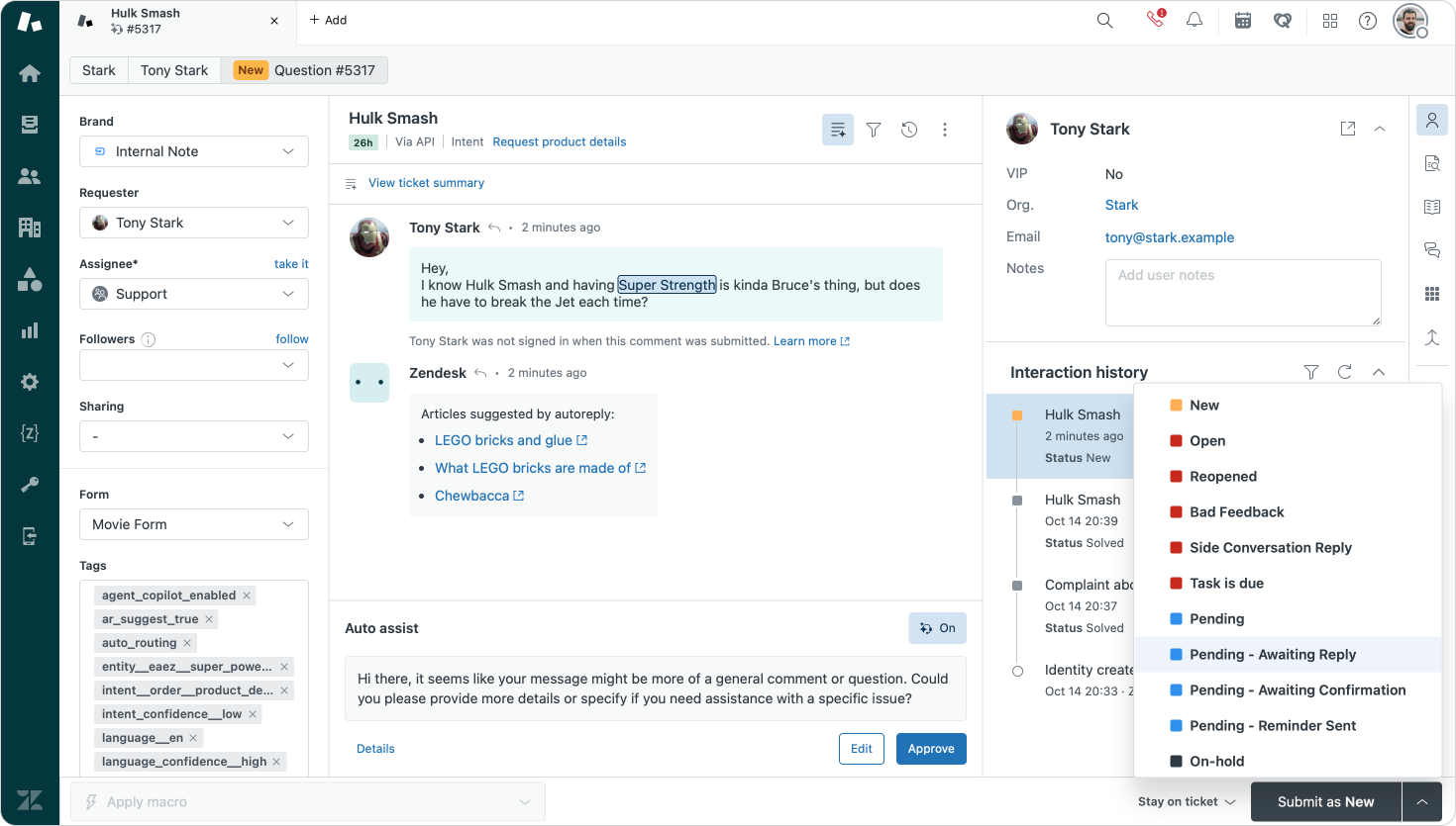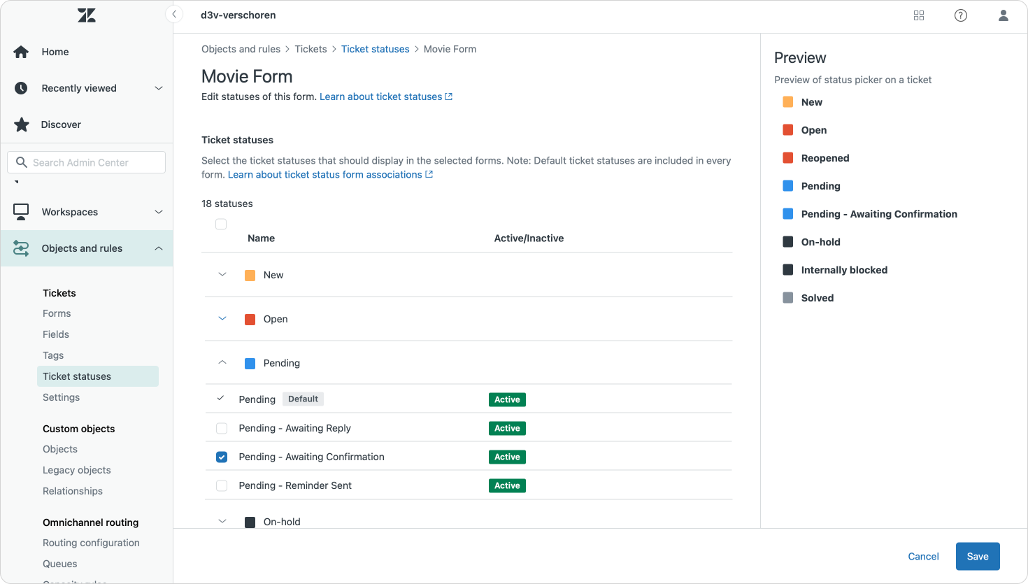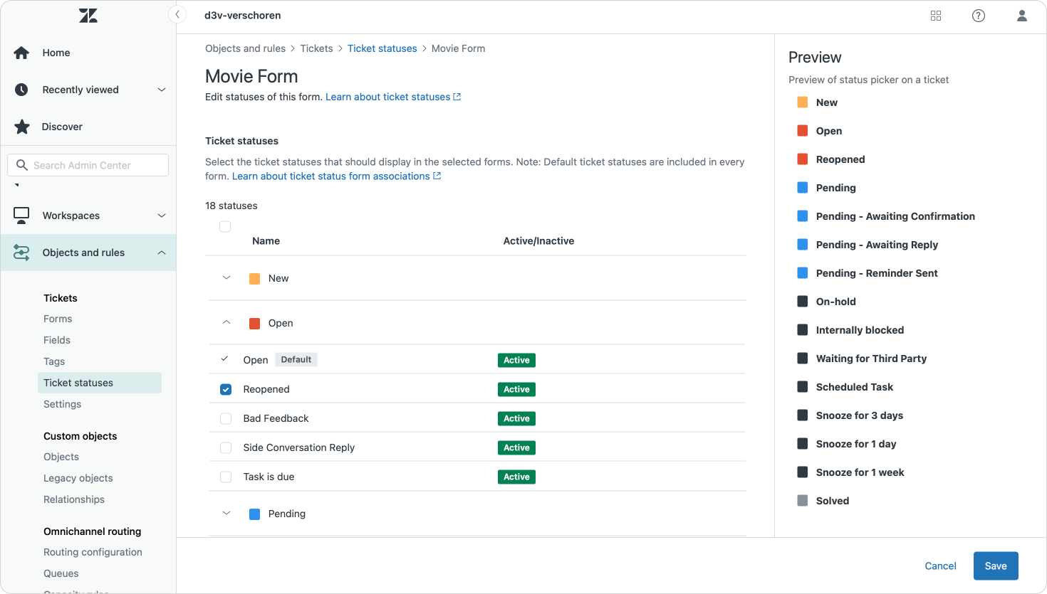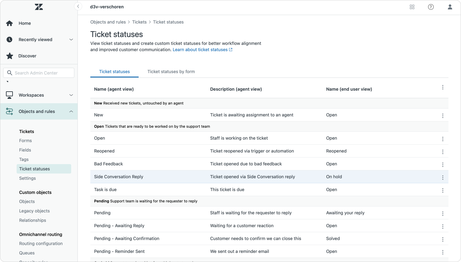 Zendesk now allows filtering your custom status per ticket form, making the list of available statuses a lot more manageable (and logical) for your agents.