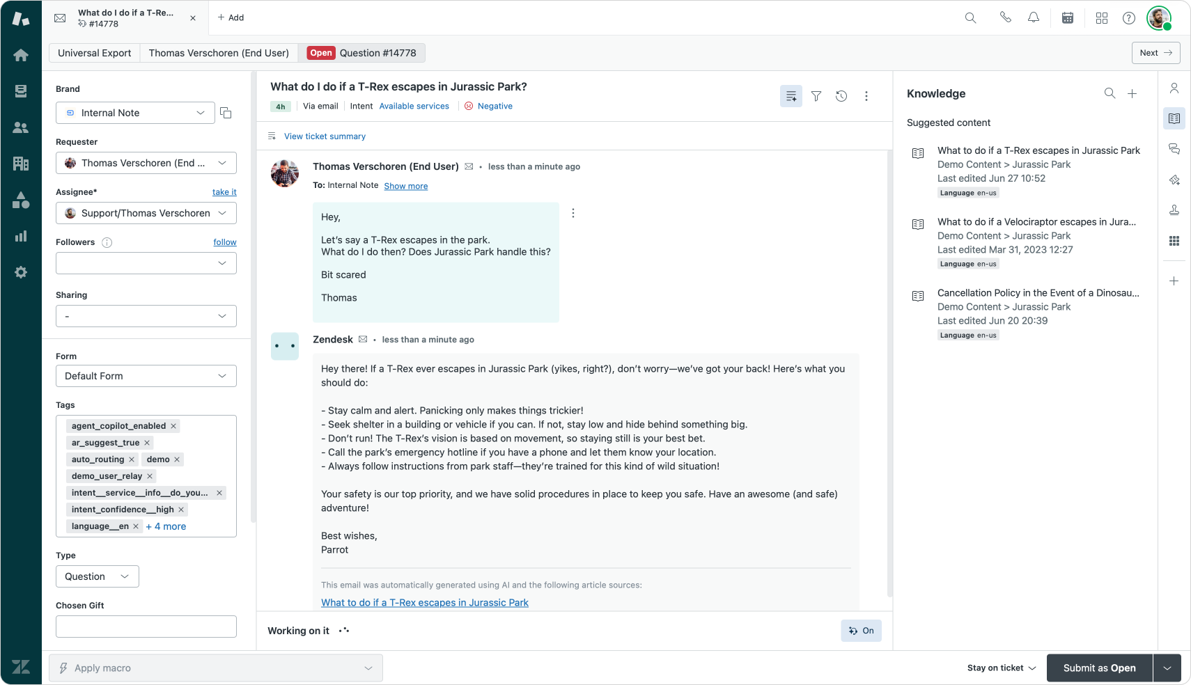 Even before the advent of AI, Zendesk had powerful (for the time) self service capabilities in place to make sure the system could attempt to deflect some questions. The Help Center was, and still is, at the core of this strategy.