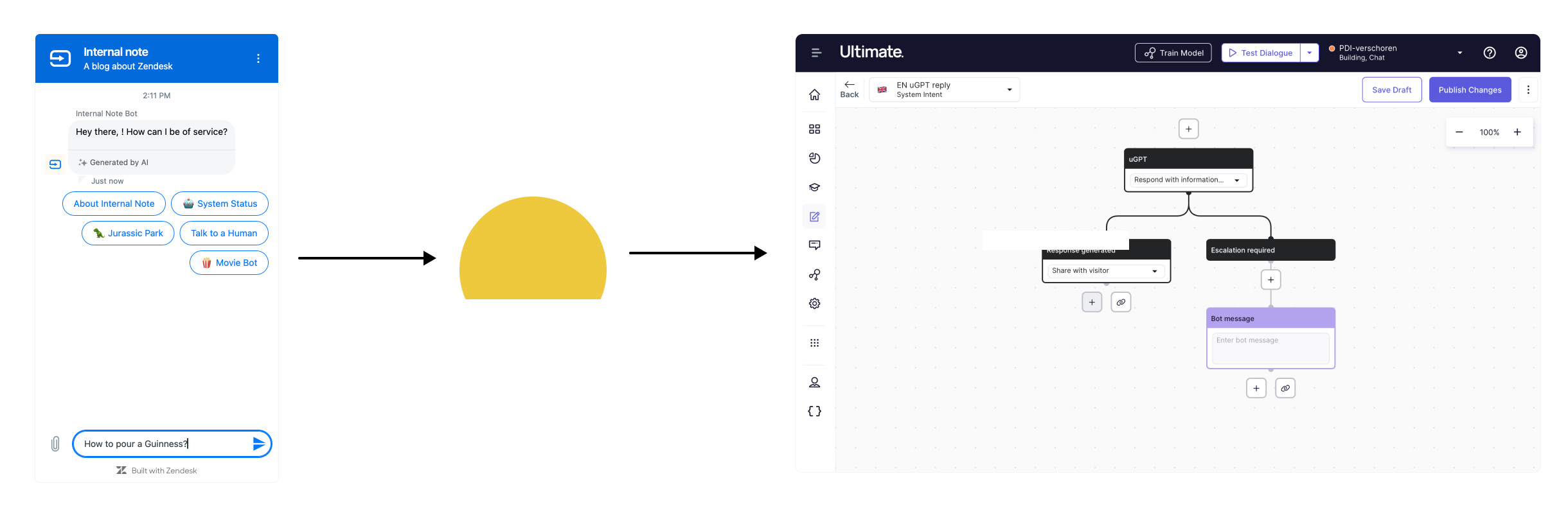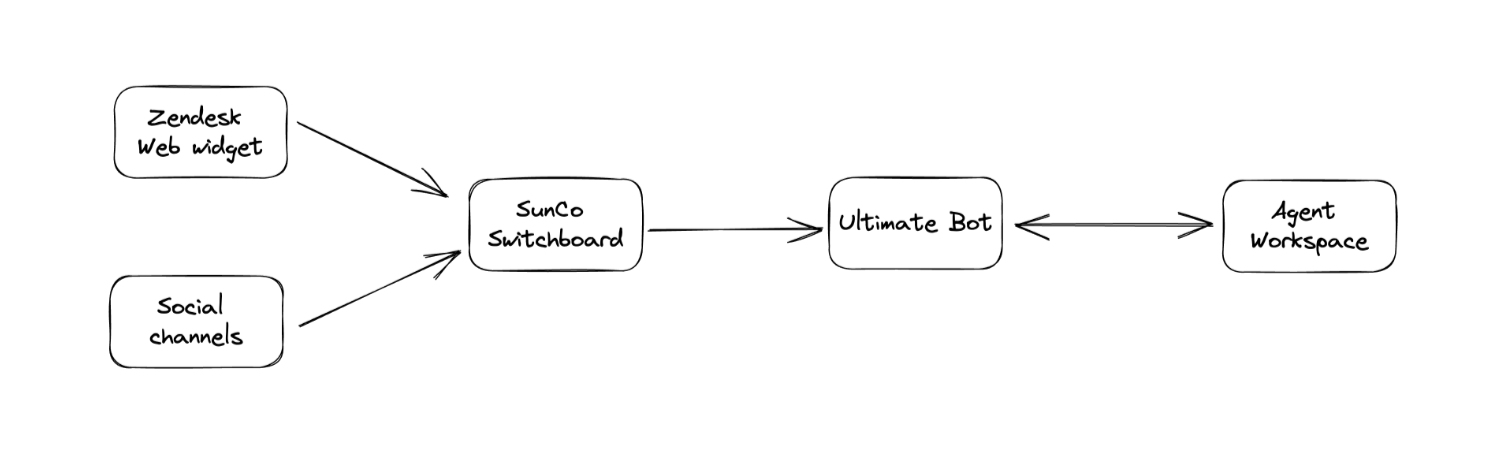 When we move away from the native Zendesk Bot towards Ultimate, Sunshine Conversations begins to play a more visible role.