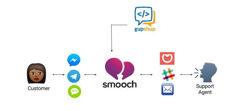 But parallel to Zendesk's efforts a whole series of startups were beginning to focus on those social channels and started building toolkits to easily integrate social channels and CRM or customer care platforms. One of those platforms – Smooch – focussed on an easy to use API that made it possible to connect dozens of channels to bots and agent platforms. They promised to handle the complexity of routing conversations, maintaining status and, more important, abstracting away the unique elements of each platform by offering generic APIs for creating conversations, sending messages and switching conversations from bots to agents and back.