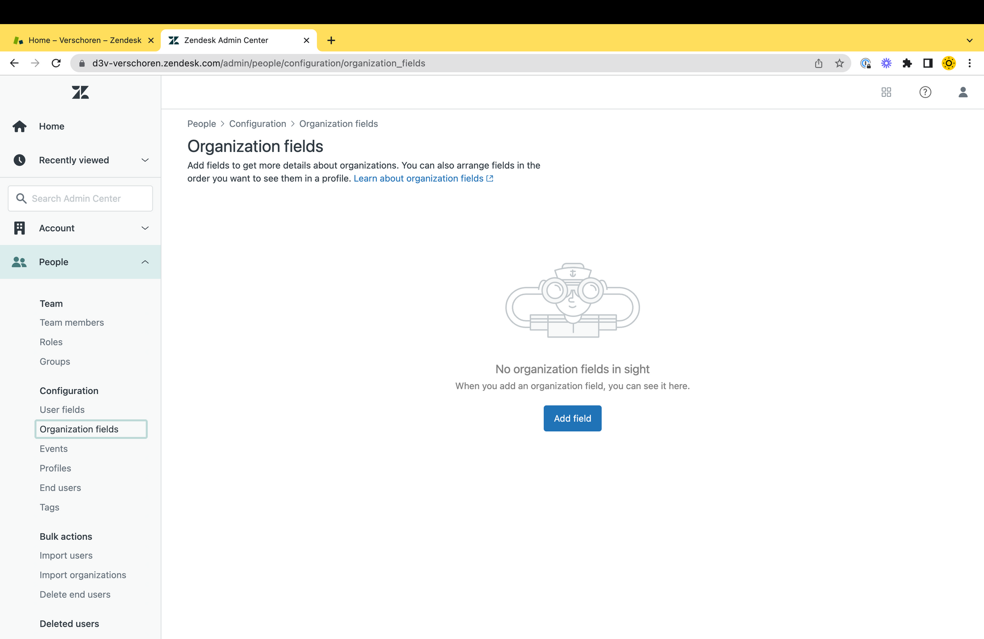 - Go to the Admin Panel > People > Organisation fields and add a new