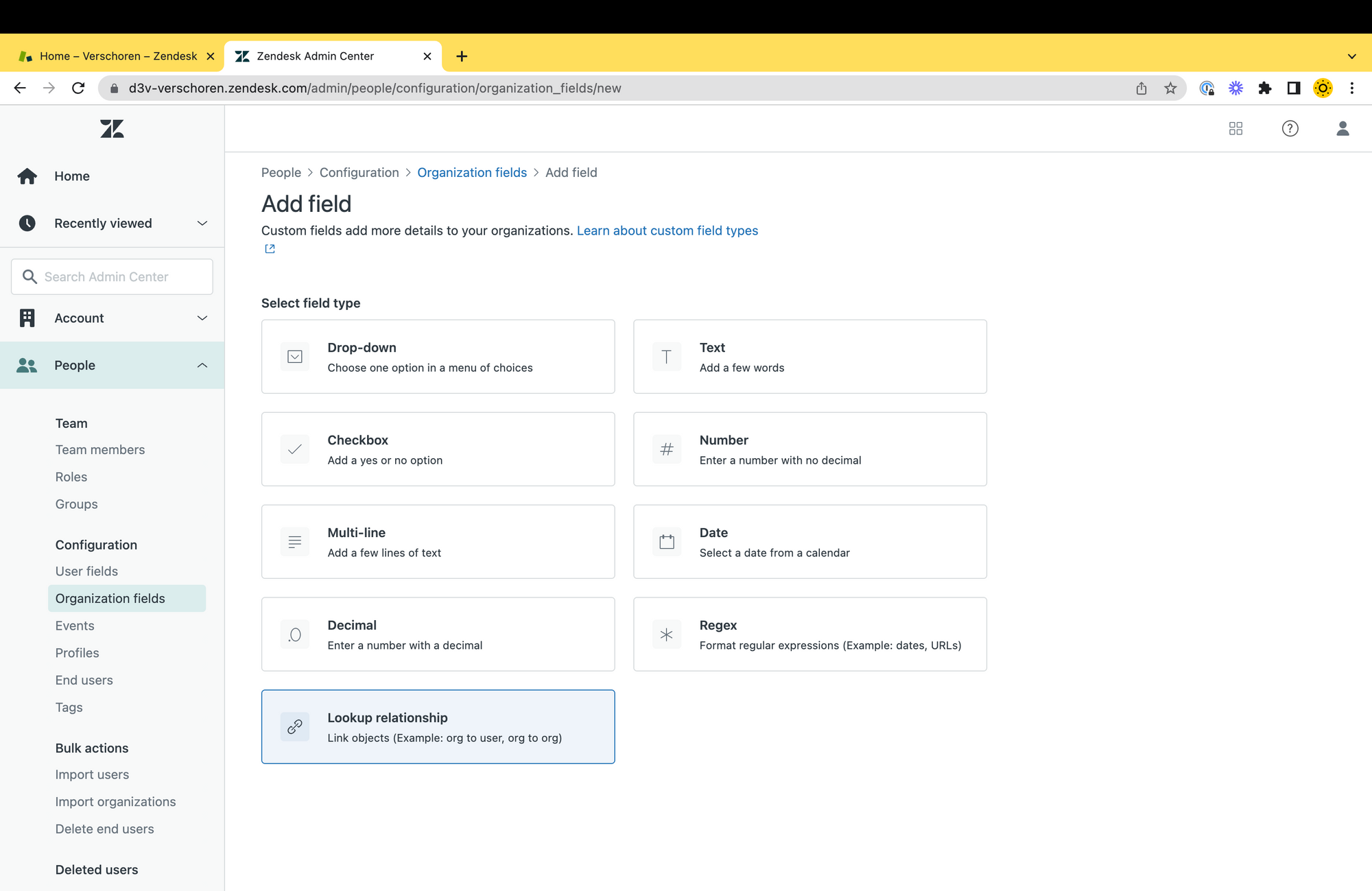 Lookup Relationship fields are a recently added features that expands the existing user, organisation and ticket fields with a new type. This new field type allows you to interlink Zendesk objects and create relationships.