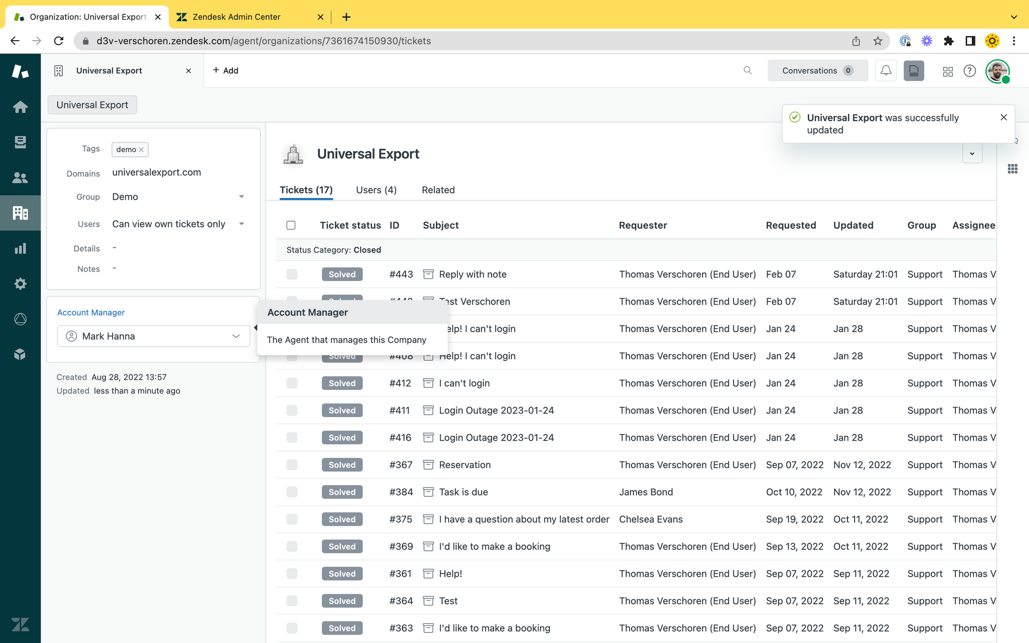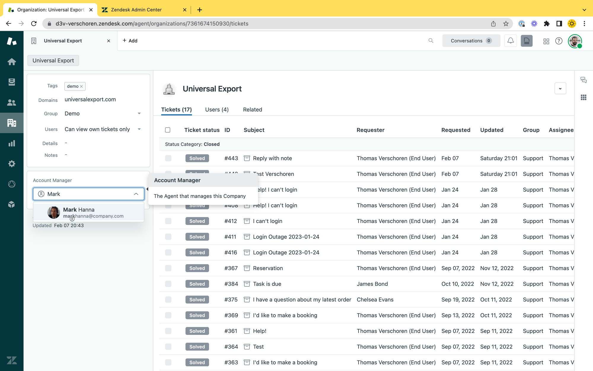 - From now on, the account manager stays in the loop of the ticket.