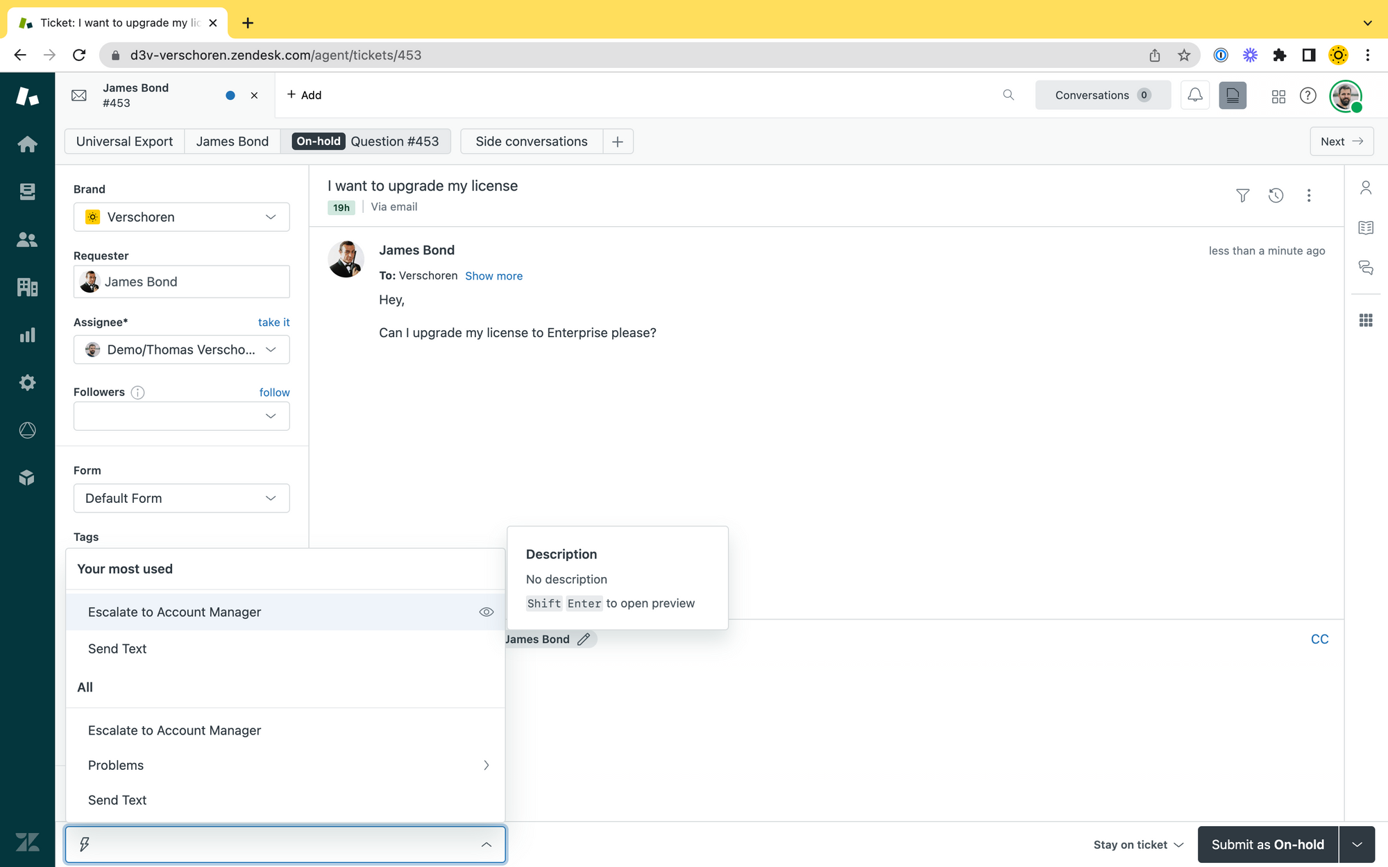 Combining the above steps together creates an easy flow for your Agents to escalate tickets to the right Account Manager.