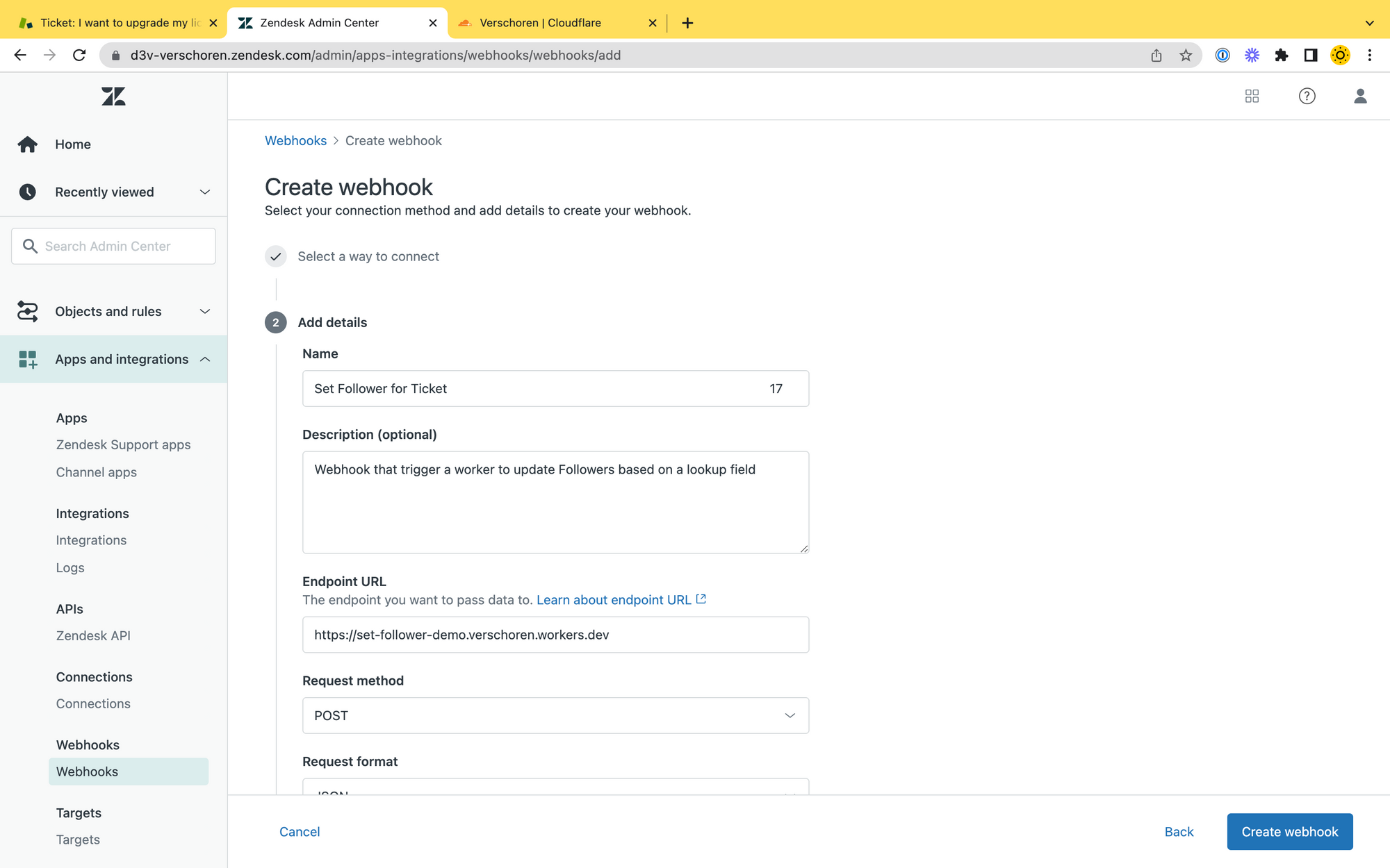 - A Webhook in Zendesk that calls our worker