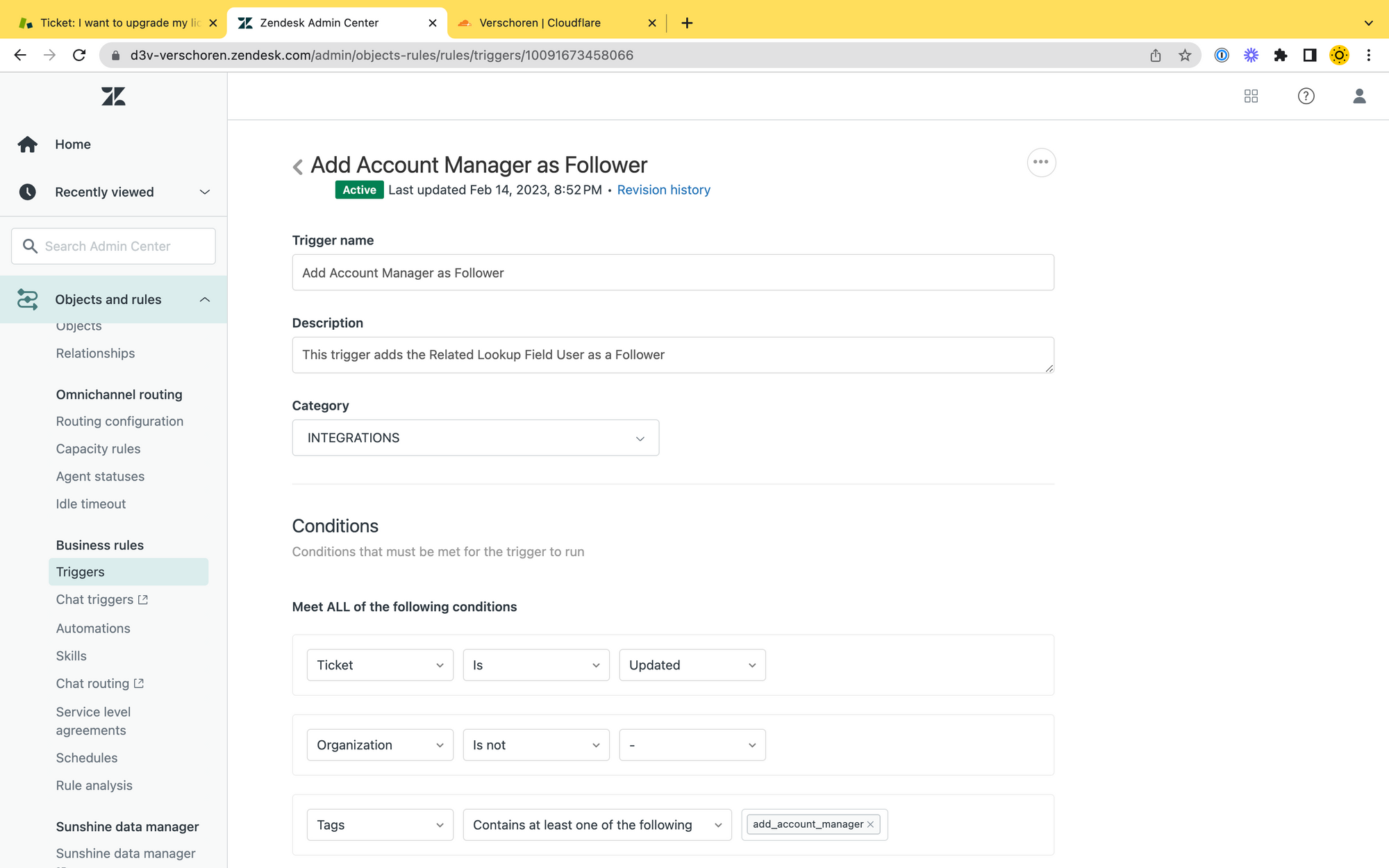 - A trigger runs and it adds the Account Manager of the organisation as a follower to the ticket.