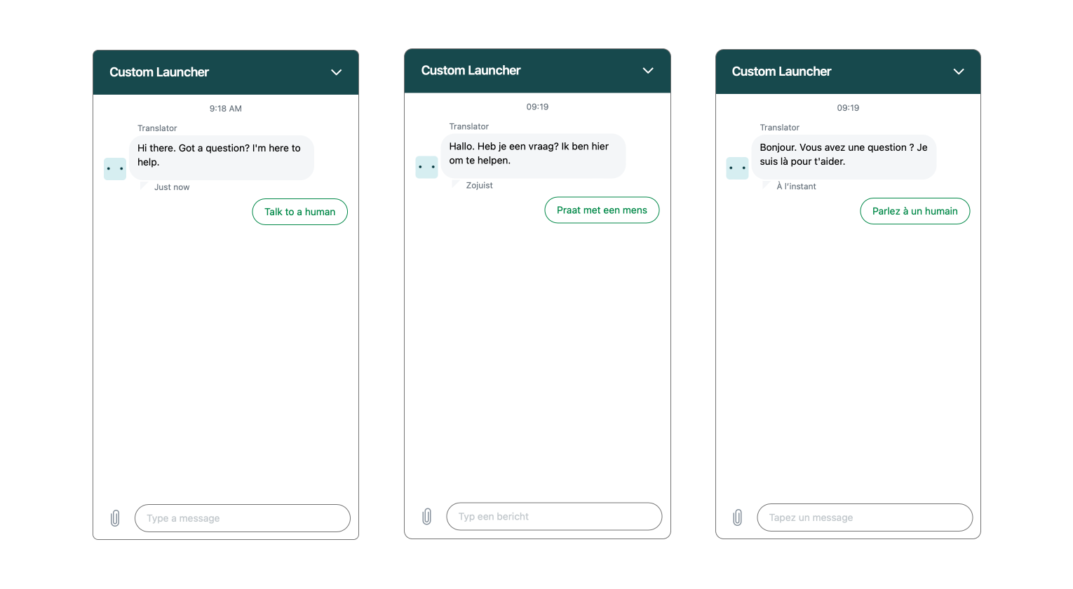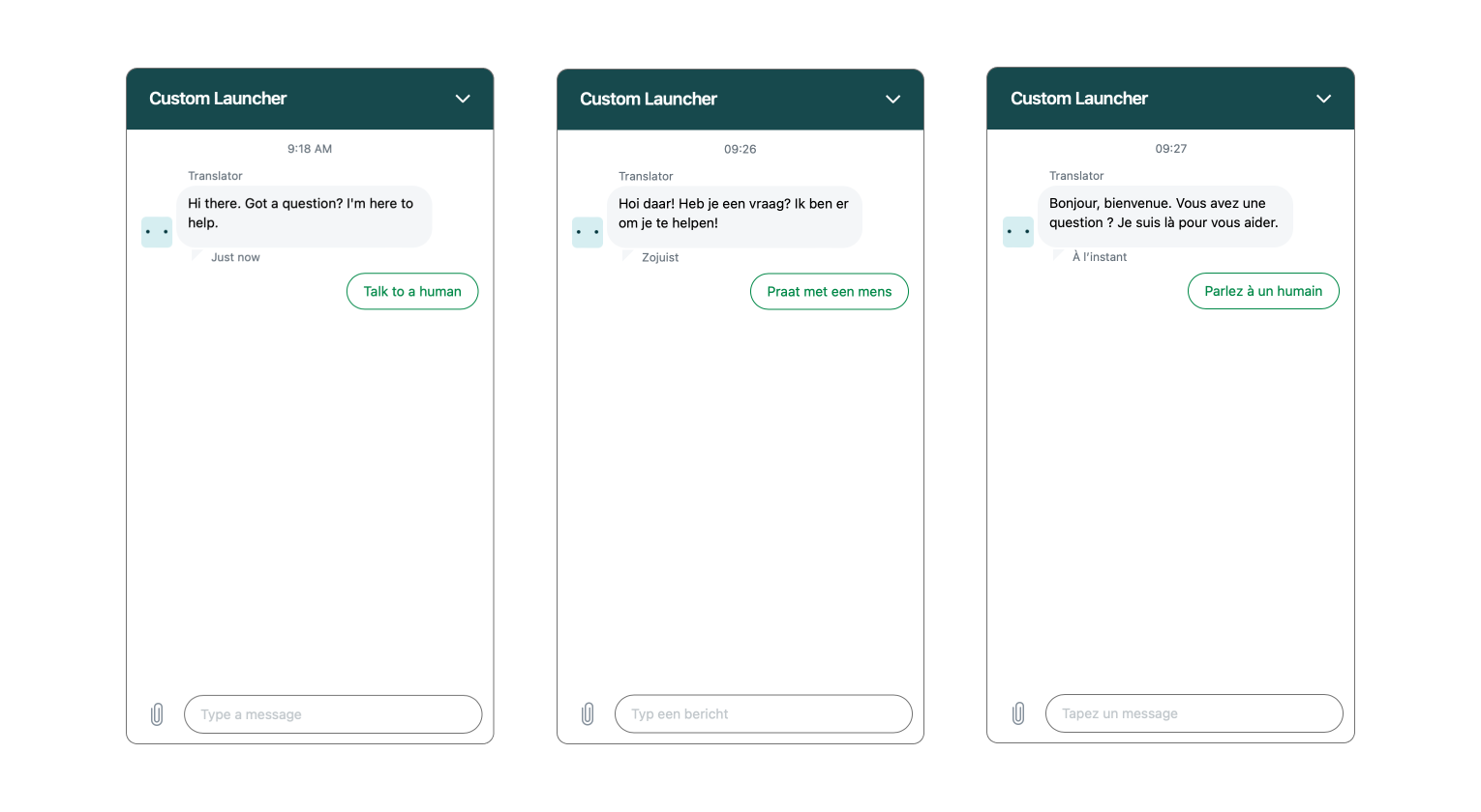 When we have our French and Dutch customers talk to our bot now, we get custom translations for our welcome message, while the rest of the buttons and actions are still machine translated.