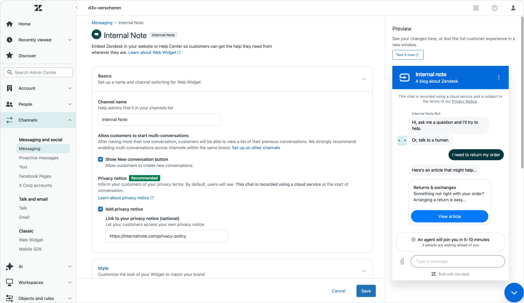 Within the Web Widget settings you can now enable a privacy notice. This will add a message at the top of your web widget with a link to your privacy policy. Perfect to explain customers how (and if) you're using AI, or all those other important privacy notices.