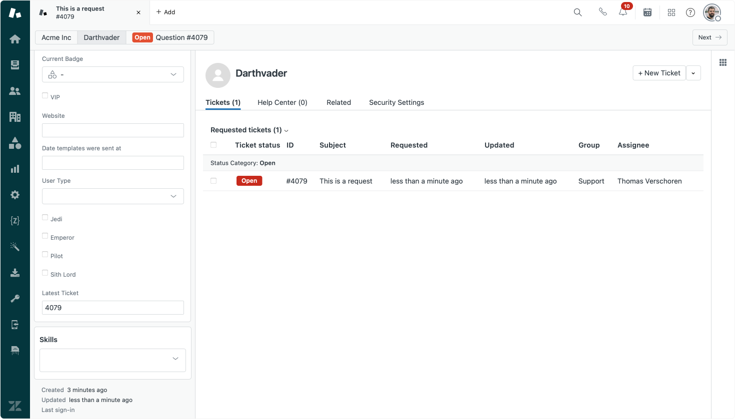 First we want to know if a user has an active ticket. We could do a lookup via external workers and the /api/v2/users/{user_id}/tickets/requested endpoint, but there's a way we can do this in-product.