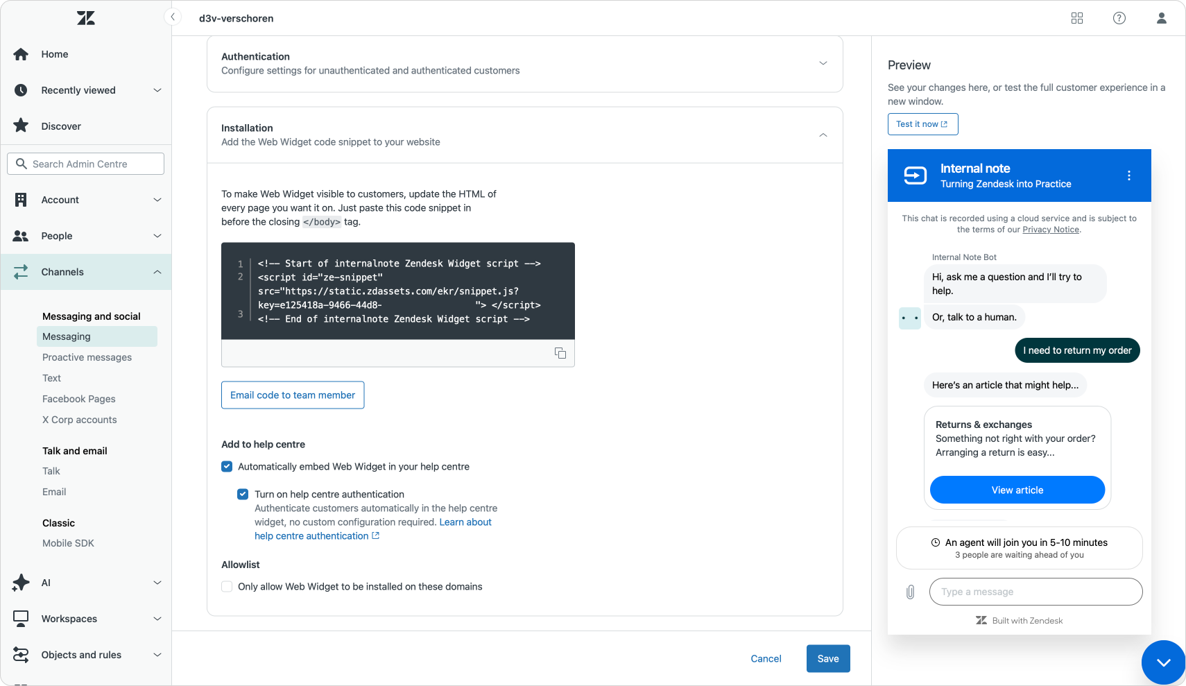 Zendesk Messaging authentication in the Help Center
