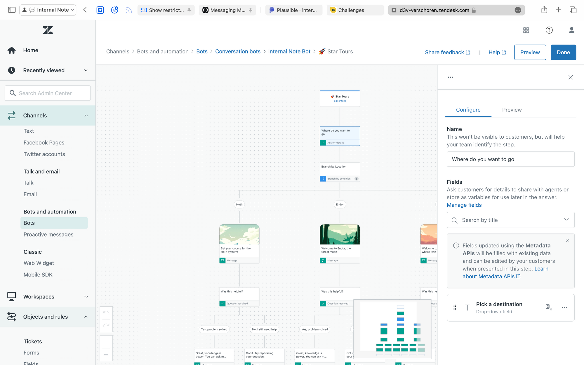 This article contains three tutorials that explain how to use the new Messaging Metadata feature in Zendesk to pre-fill fields in your conversation bot flows.