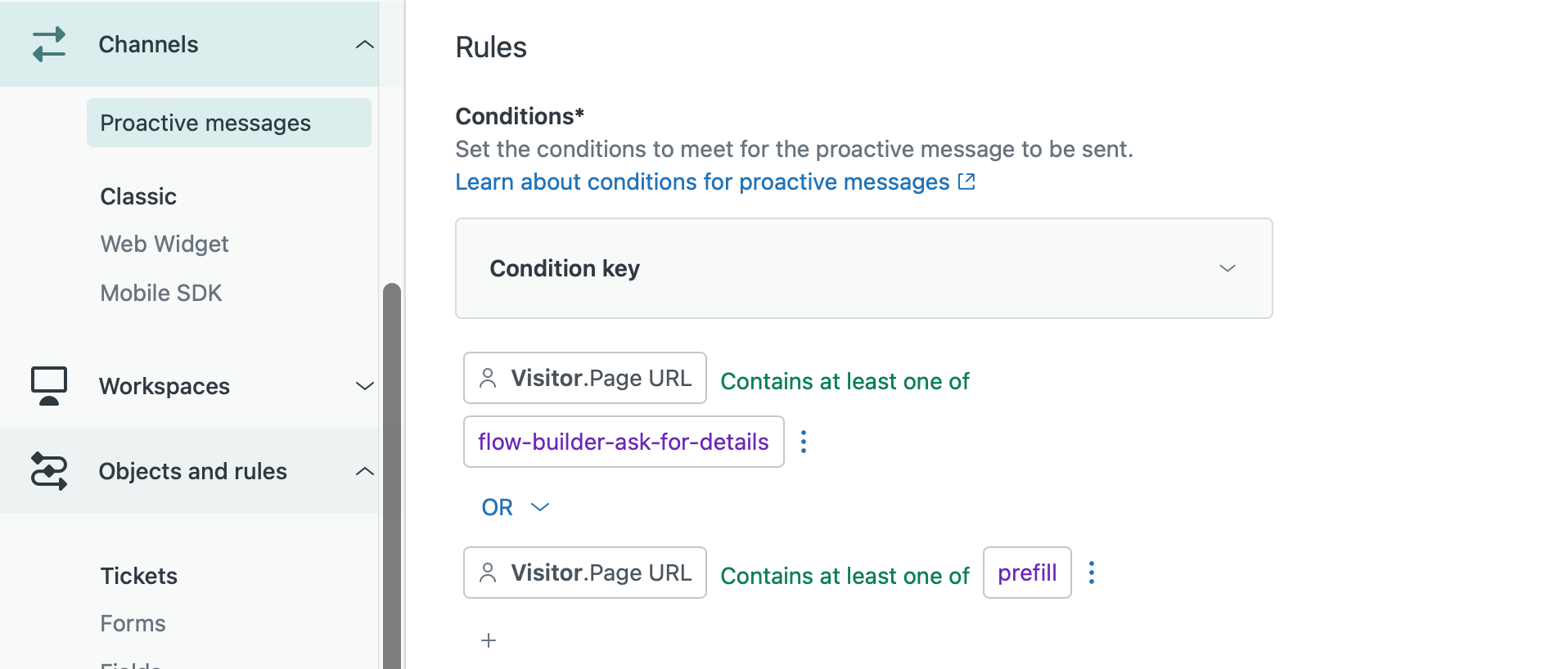 And finally we add a new proactive flow. This is optional, but by using this flow we can select the Intent and immediately jump to it when the page loads.