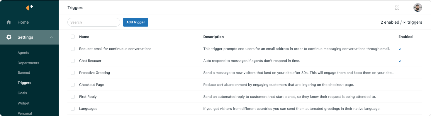 Back when Zendesk offered Zendesk Chat, you had a specific section to create triggers for chat conversations. You could do things like send a welcome message, remind customers of a lack of replies and so on.