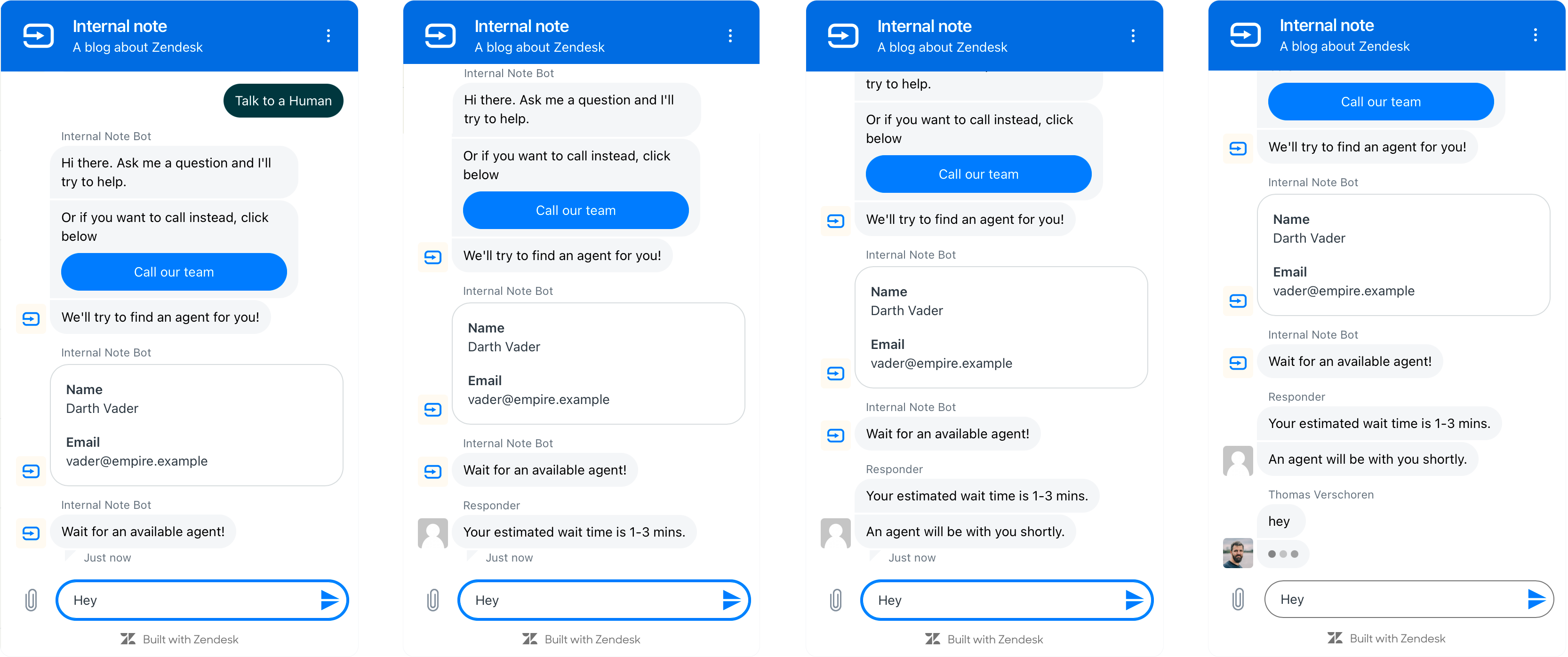 For an end-user the experience is quite nice. The bot sends them a message telling them about their waiting time, tells them it's their turn and then passes it to an agent.