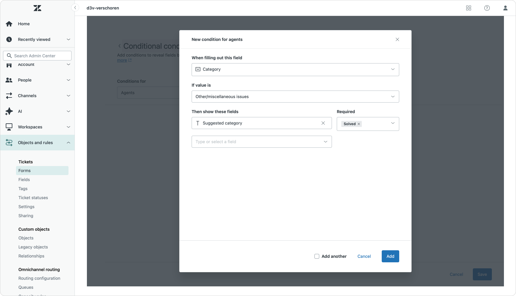Once you've disabled triggers and automation and updated your queues, you can remove your category ticket field from your forms and deactivate the field. Agents will no longer need to manually set the category, and will solely find the intent in the header above the conversation.