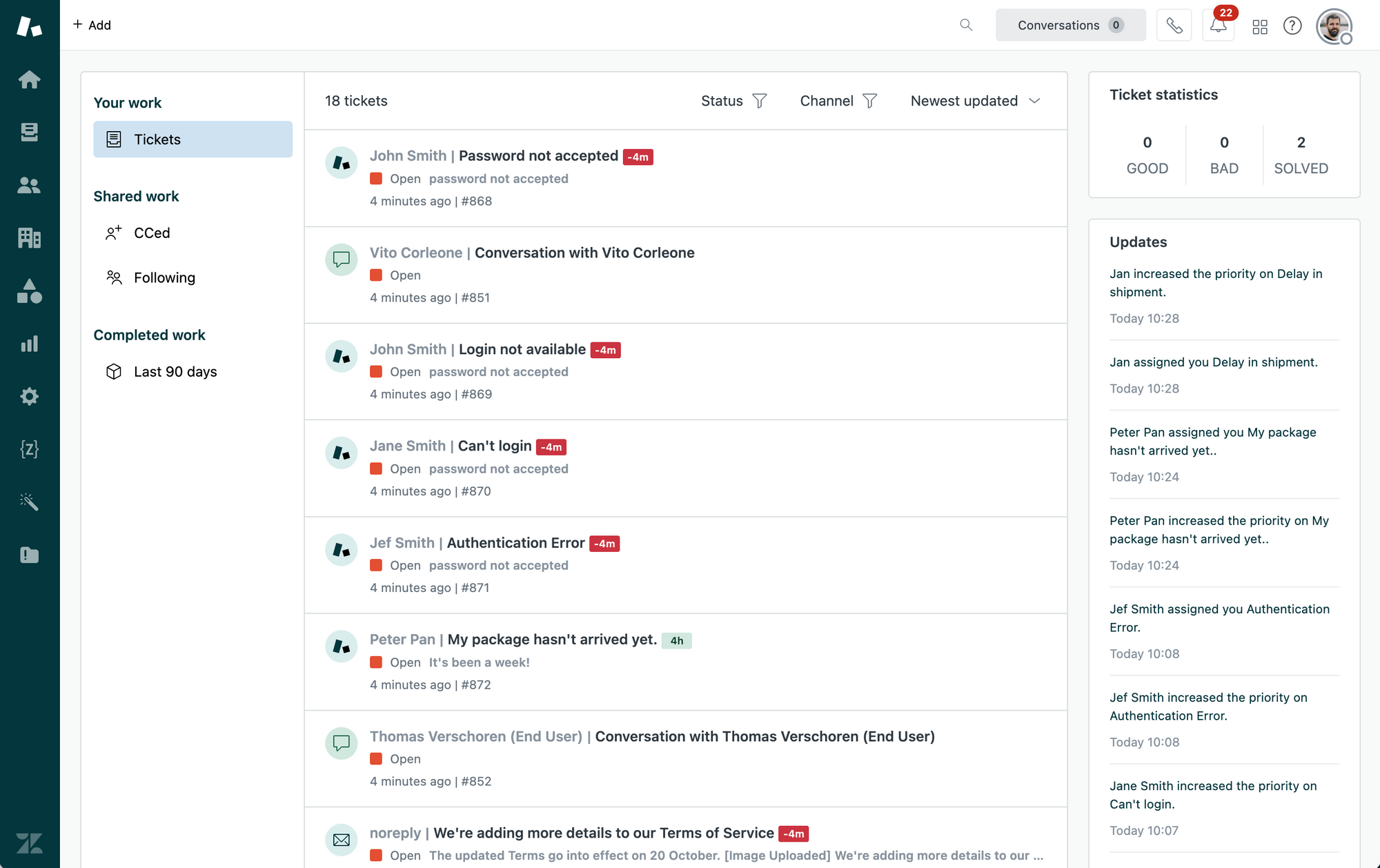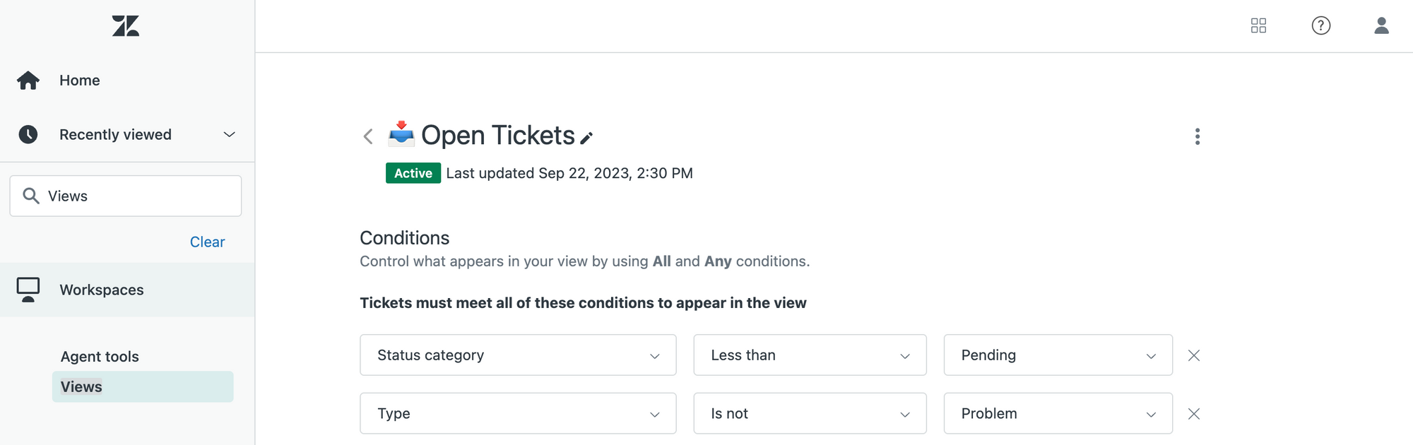 But in a Zendesk world where OmniChannel routing, skill based assignment and the new Agent Home are becoming the de-facto standard, you should reconsider your approach to views and start thinking from the idea of a ticket queue where Zendesk surfaces work to agent based on priority and sla, instead of a micro-managed view based approach with dozen if separate inboxes.