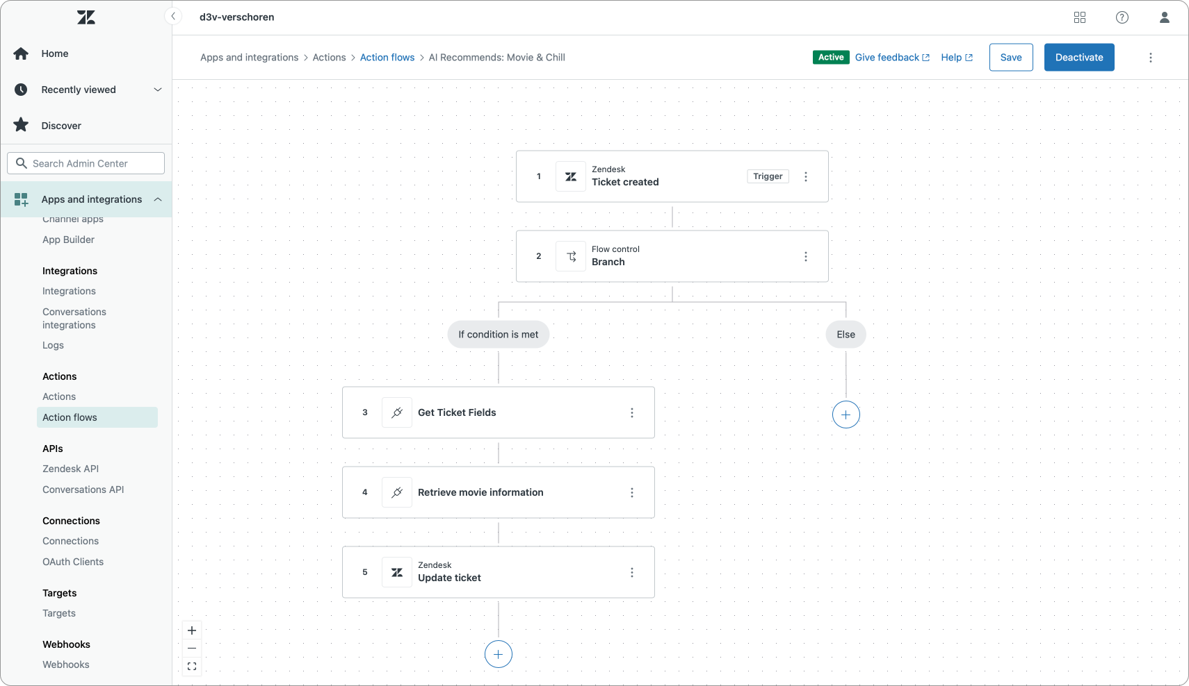 Zendesk Action Builder is a visual flow builder that allows you to create flows to update tickets and execute actions in external platforms based on changes on those tickets.