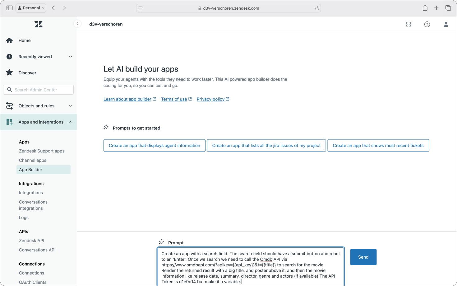 Just as we look at Meta Smart glasses or Apple Vision Pro as something that promises a future of wearable screens, App builder does show a future were building a sidebar app in Zendesk is simple as just telling Zendesk how to do it.