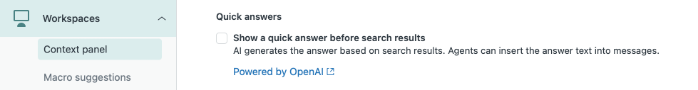 Similarly, when agents open the Knowledge Panel in Agent Workspace they'll not only see a list of relevant articles, but also a Quick answer. Here too agents can see the source content and have the option to give feedback.