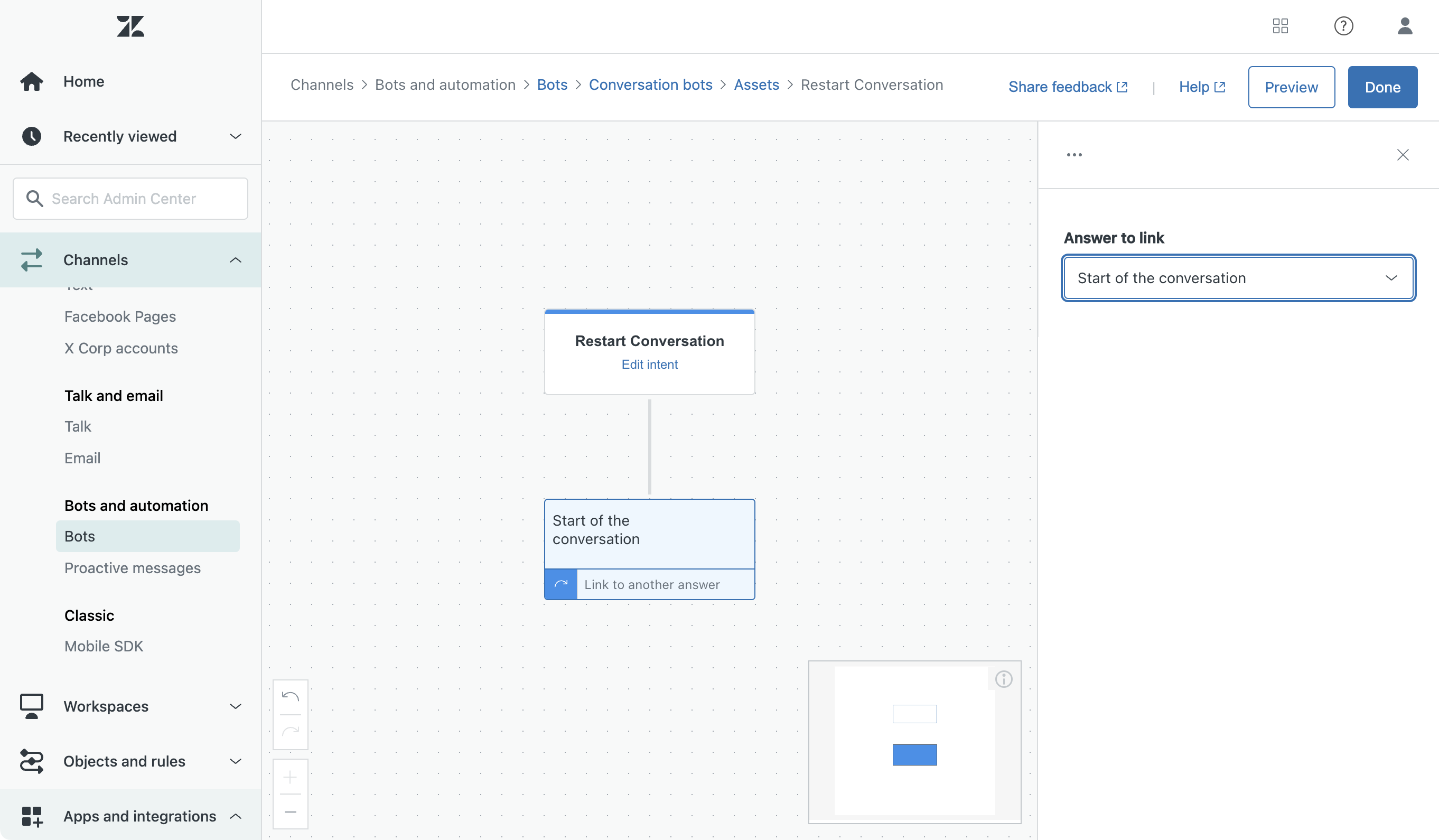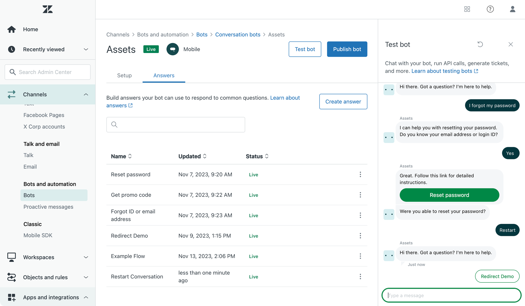 This tutorial shows you how to build an Answer flow for Zendesk Messaging that allows visitors to restart the conversation.