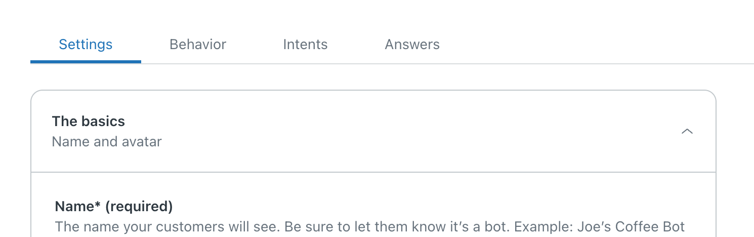 All settings for a bot are now consolidated into one view that combines both setup, behaviour, intents and answers in one view, instead of the multiple pages those settings uses to be spread across.