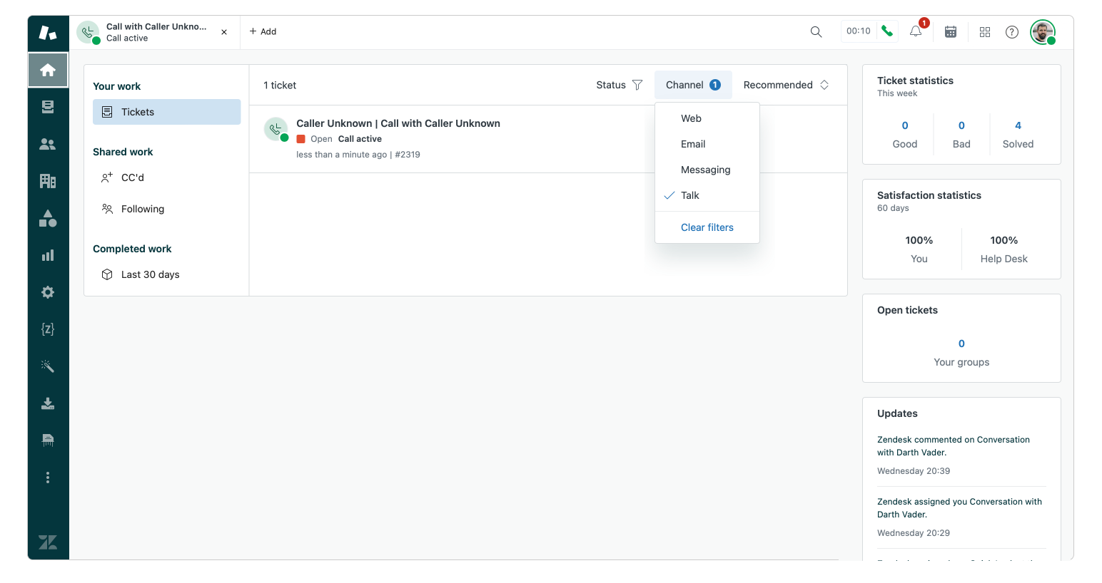 - And to wrap it all up, Agent Home now also supports Talk tickets in its views.