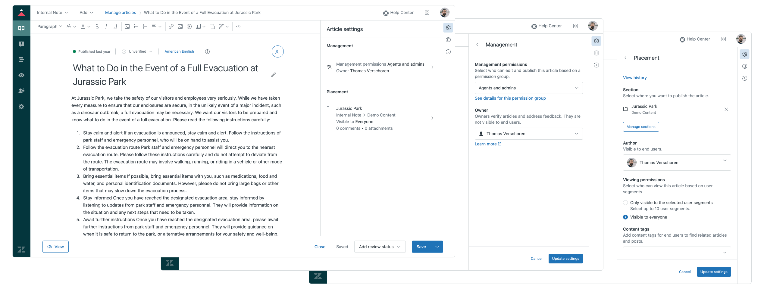 Continuing the work on the Guide editor these last few months, July saw a consolidation of all article settings in a new sidebar with two sections. One contains all edit permissions, the other contains placement and visibly of the articles.