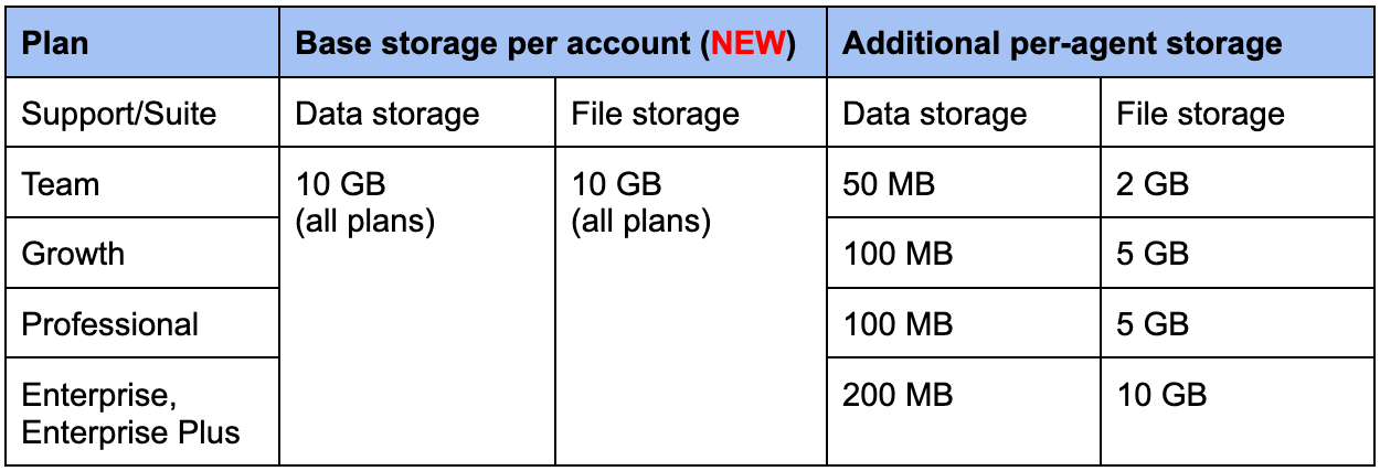 So if you have Suite Professional with 10 agents, you would have 11GB of Data Storage, and 60GB of File Storage available.