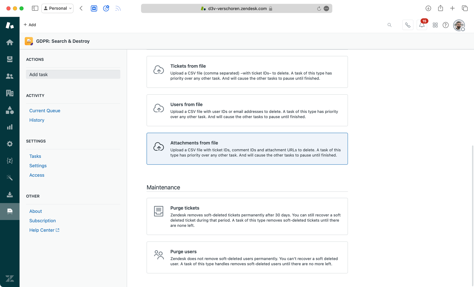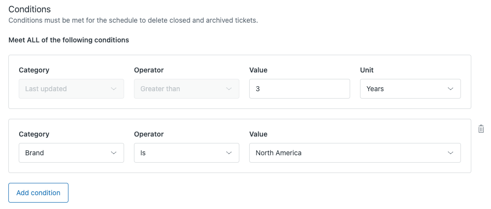 But regardless of usage, starting to charge customers for data without offering proper tools to handle these changes is not that great. The bulk deletion options in Zendesk are either too broad or locked behind a paid add-on.