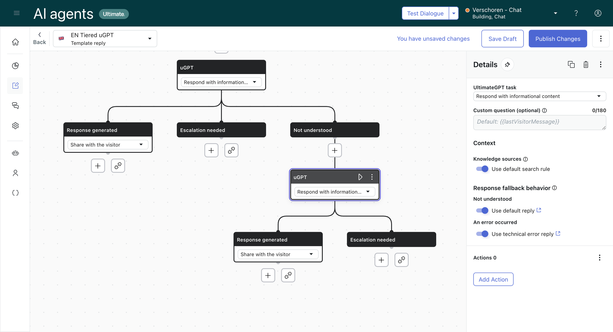 It's a bit of a hack, and I wouldn't advise anyone to use this unless you run into the issues mentioned above of having clearly subpar content that is the sole source of that data. But in those cases, introducing a tiered uGPT approach is gold. It improves the quality of your primary sourced replies, while still offering a wider range of answers to conversations that would otherwise all go to your agents via escalation.