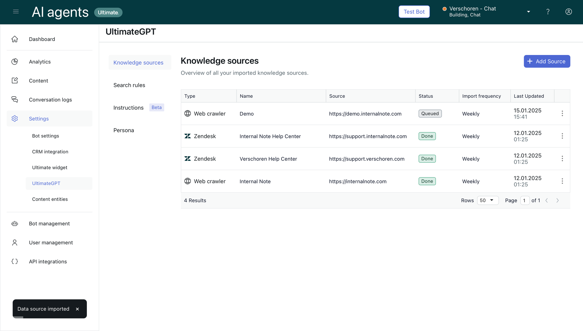 When looking at this problem from a distance you might see an obvious solution. We tag each imported data-source with a priority, which will tell the bot "look at the highest priority sources first, and then dive down into the other ones".