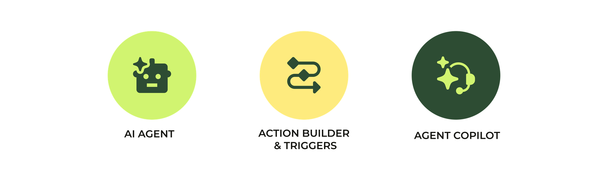 The third type of actions we can run are trigger-based actions. Like AI Agents, these operate fully autonomously, responding to events that occur on a ticket. Both classic triggers and Action Builder provide event-driven automation that offloads repetitive tasks from your agents, allowing them to focus on complex cases and deliver empathetic, personalized support.