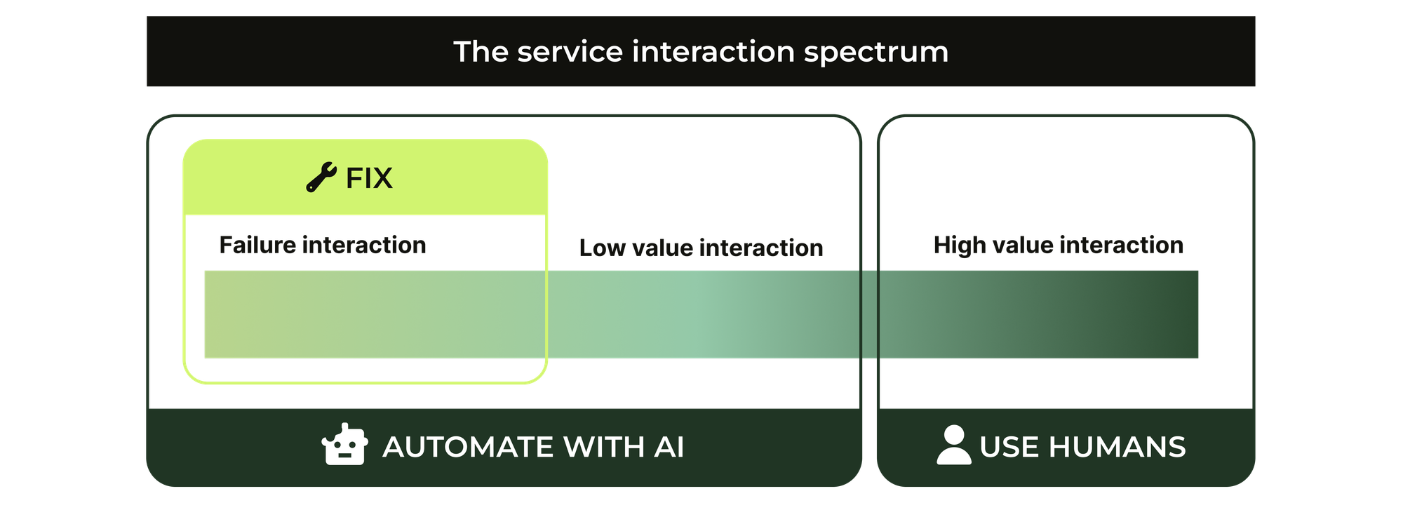 AI-powered resolution doesn’t simply automate the low-value side. It moves fluidly between these levels. It resolves at scale when possible, escalates with full context when needed, and turning signals from failure into improvements in processes, systems and knowledge.