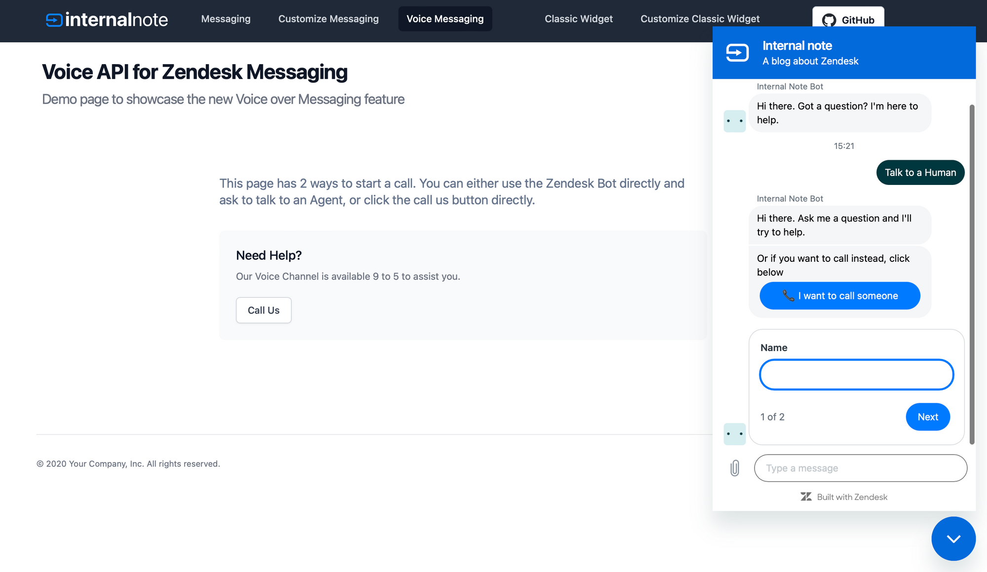 You can now let your customers place calls via the Messaging Widget. This article shows you how, and explains how to integrate Voice with your Zendesk Bot.