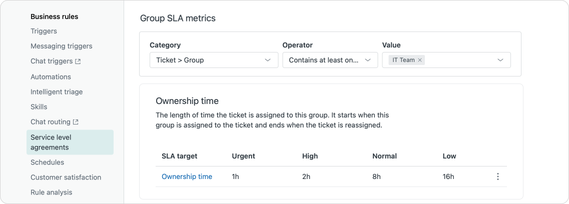 Once the ticket leaves the original group the respond time is out of their control, putting metrics like next reply time or full resolution time at risk of breaching.