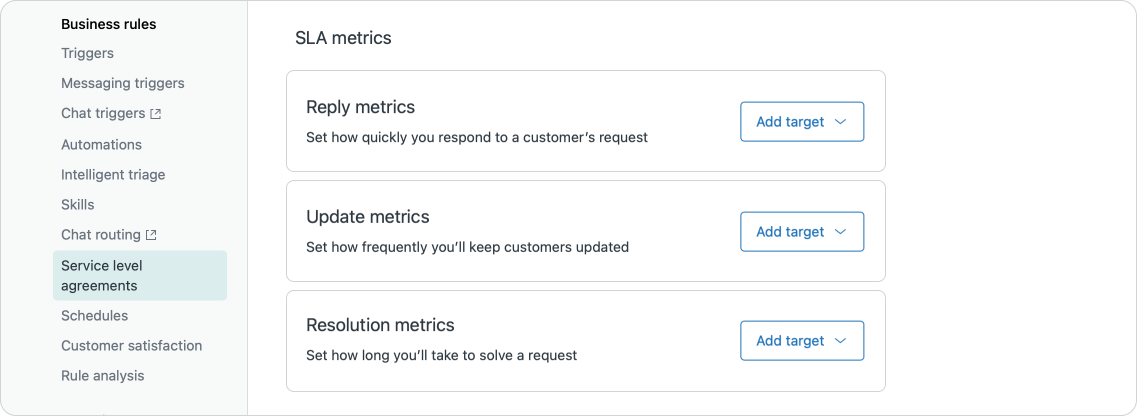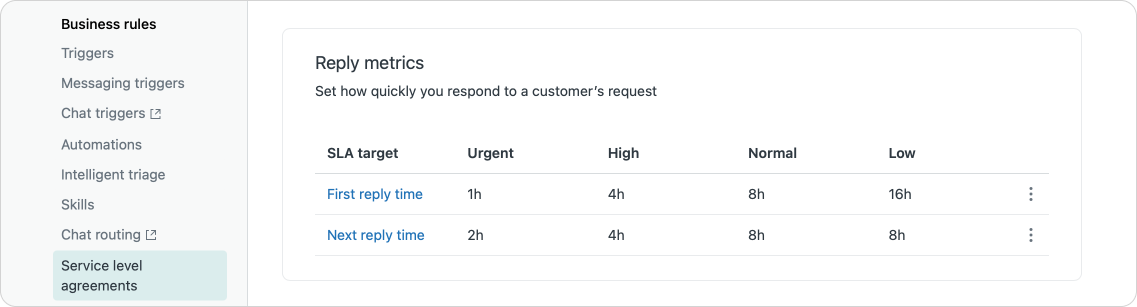 When it comes to setting up SLAs in Zendesk, the basic premise has not really changed. You can measure different points in the lifecycle of a ticket, and you can choose to enable some, or all, of the metrics.