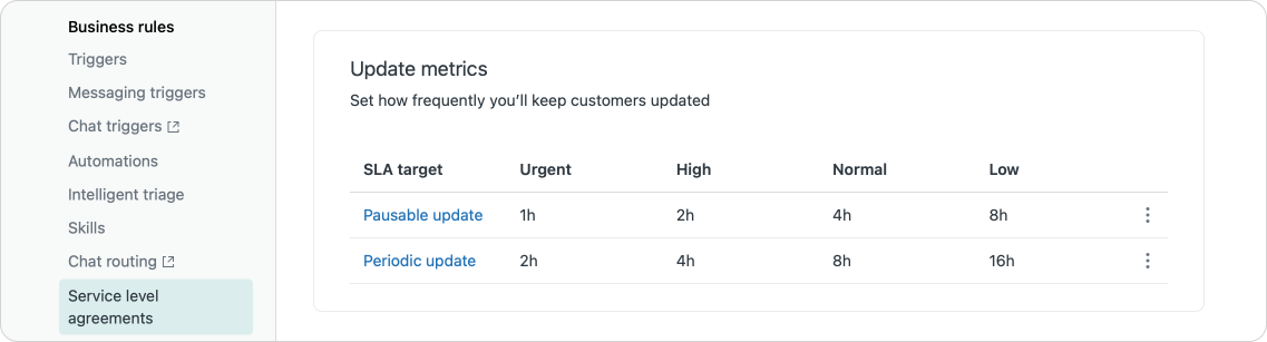- Update Metrics, which measure the time in between replies, making sure the customer is staying up to date with longer tickets.
