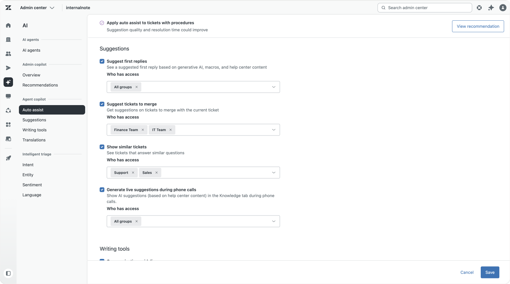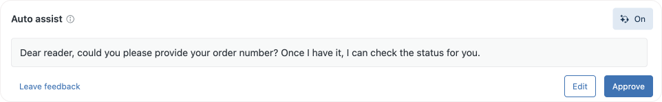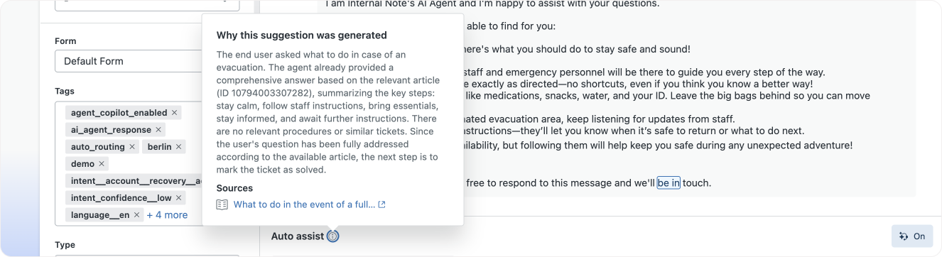 Where writing tools are there to transform existing text, auto-assist is there to really help your agents and guide them in handling tickets.