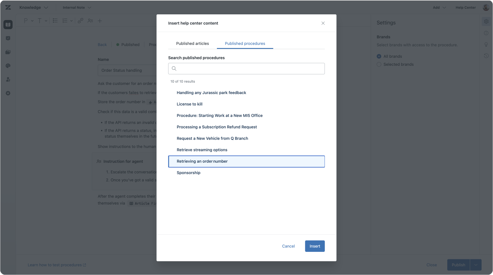 New this month is the ability to include Knowledge as native actions within a procedure. This allows you to directly reference a specific support article, or link to another procedure.