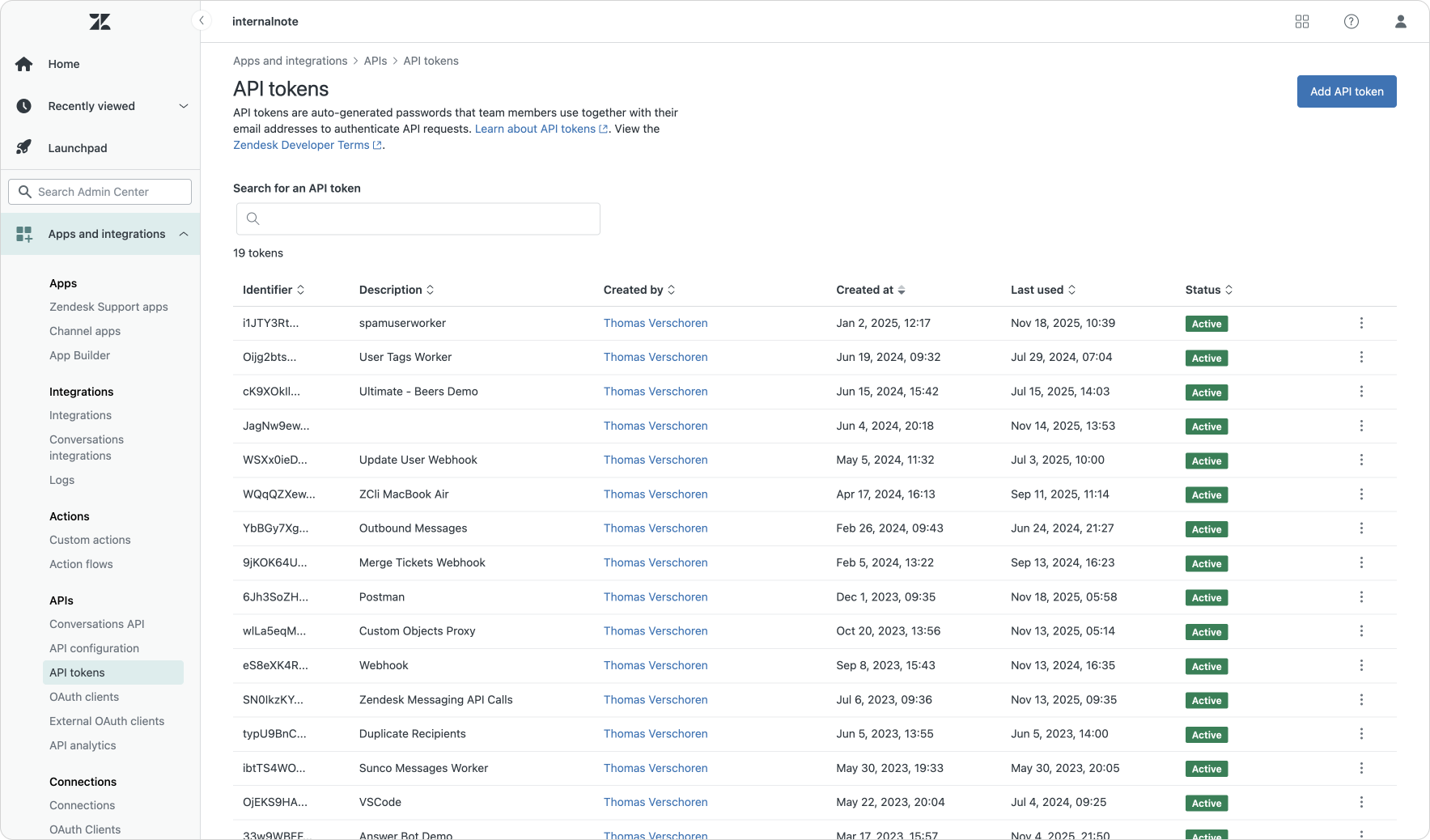 One element Zendesk has not yet fully addressed is adding a more granular approach to API access. For now, an API token's scope is still defined by the user that uses the token, instead of the token itself being limited to e.g. only users or views. This means that if an agent decides to use their token against an other user's email, they'll get access to that user's scope. API tokens should be handled with care and not shared at will.