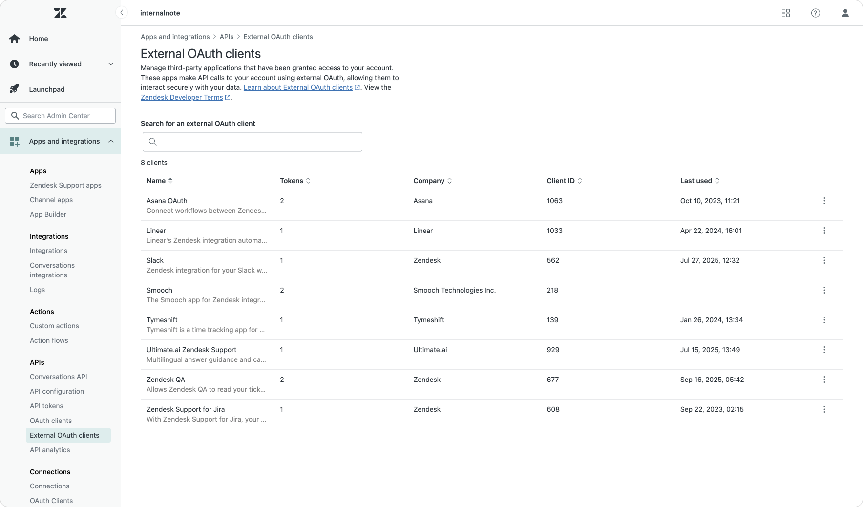 The shift from password based authentication towards API tokens and oAuth also means you want to be able to easily manage both solutions within the Admin Center. As part of their authentication "refresh" Zendesk also revamped the Admin Center pages for API tokens and oAuth.