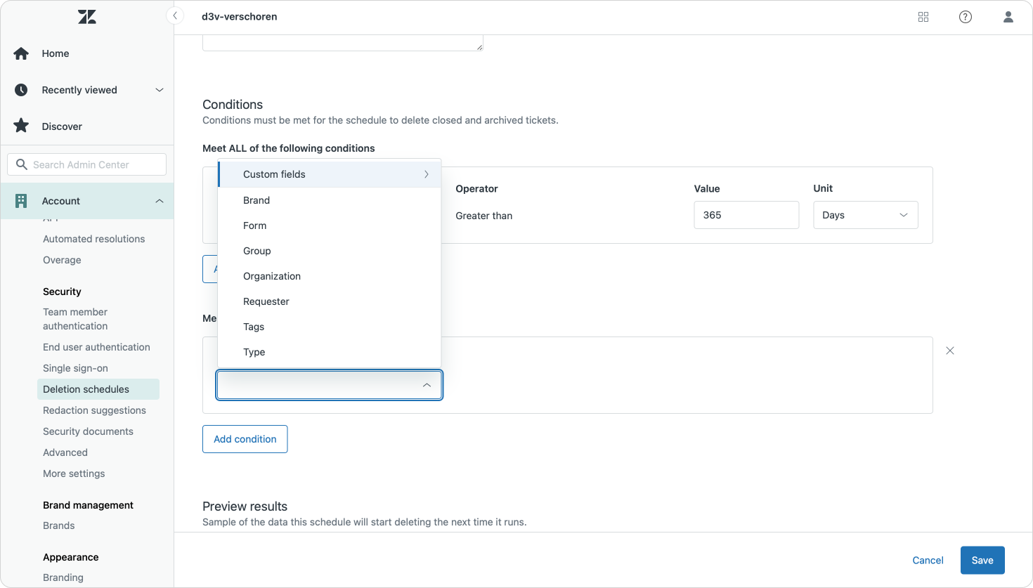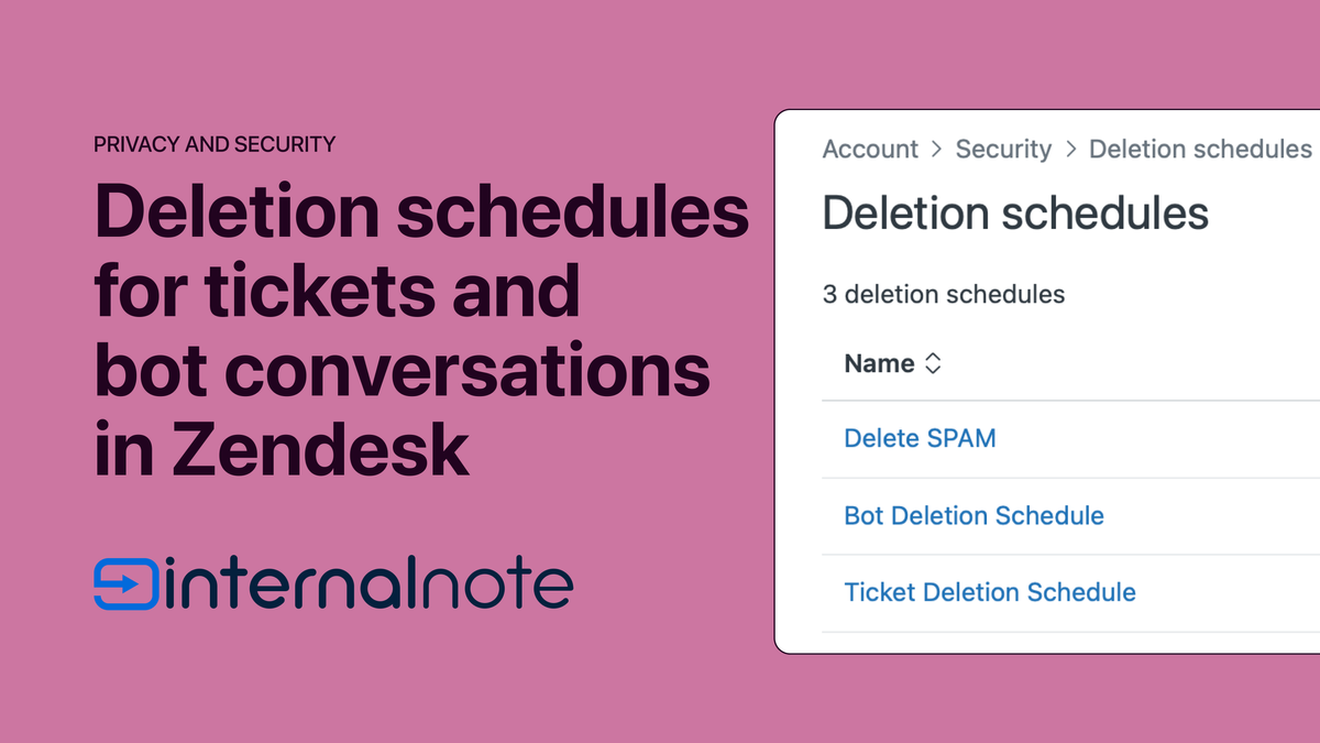 This is where Zendesk's deletion schedules come into play. These allow you to periodically delete data from your Zendesk instance based on conditions you set. It's useful to keep your storage usage in check, or to comply with local privacy laws like GDPR.