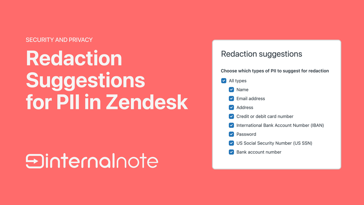 This is where Zendesk's redaction suggestions come into play. Similar to how entity detection in Intelligent Triage can identify products, Zendesk can also identify and highlight PII in your conversations. Within settings you can choose which types of information the system should look for, and these can then be highlighted in the conversation.