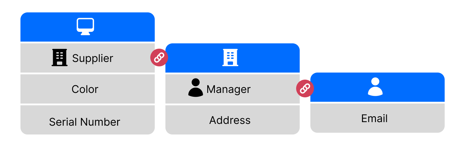 Imagine you have a custom object that stores IT assets. Each asset has a supplier. And each supplier has a manager. Those references are linked via Lookup fields.