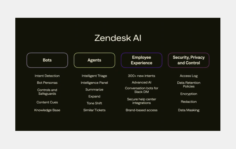 Zendesk isn't just for customers. With the new Intents for HR and IT companies can leverage Zendesk AI to make sure employee questions are routed to the right team. This can be combined with existing features like Private Groups to make sure that sensitive tickets are one visible to a select group of people.