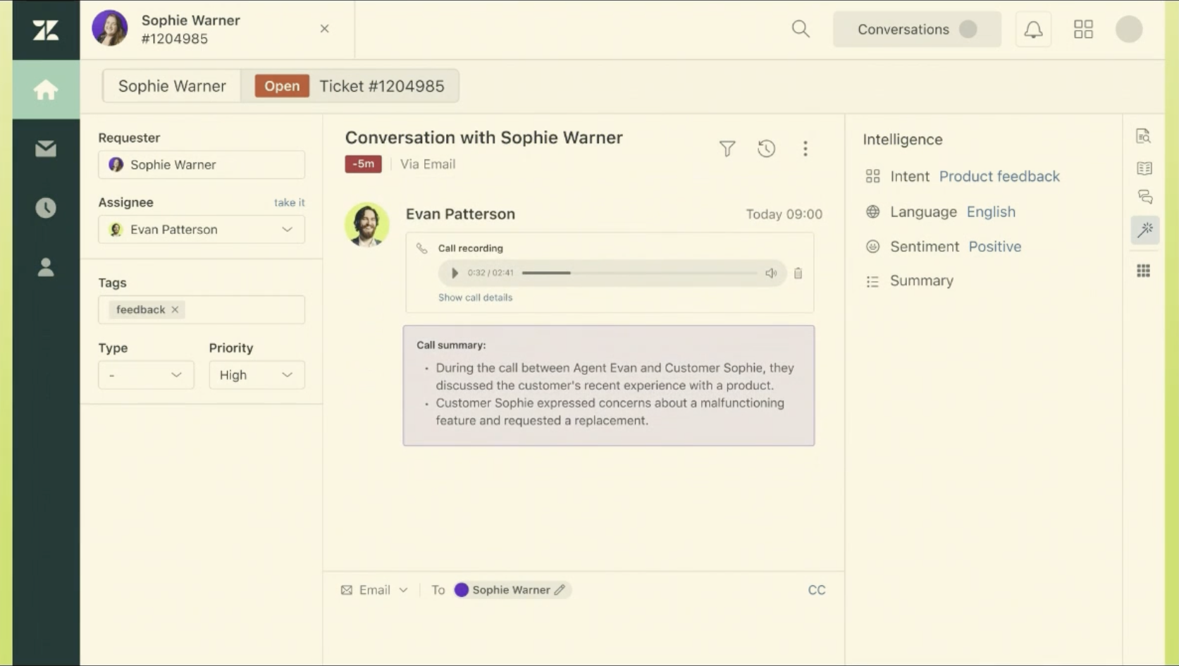 To conclude the Agent section of the announcement, Zendesk Voice (Talk?) also got some love. Scheduled for November, Zendesk will generate a transcript and summary and intent/sentiment analysis of every phone call (if you've got recordings enabled)