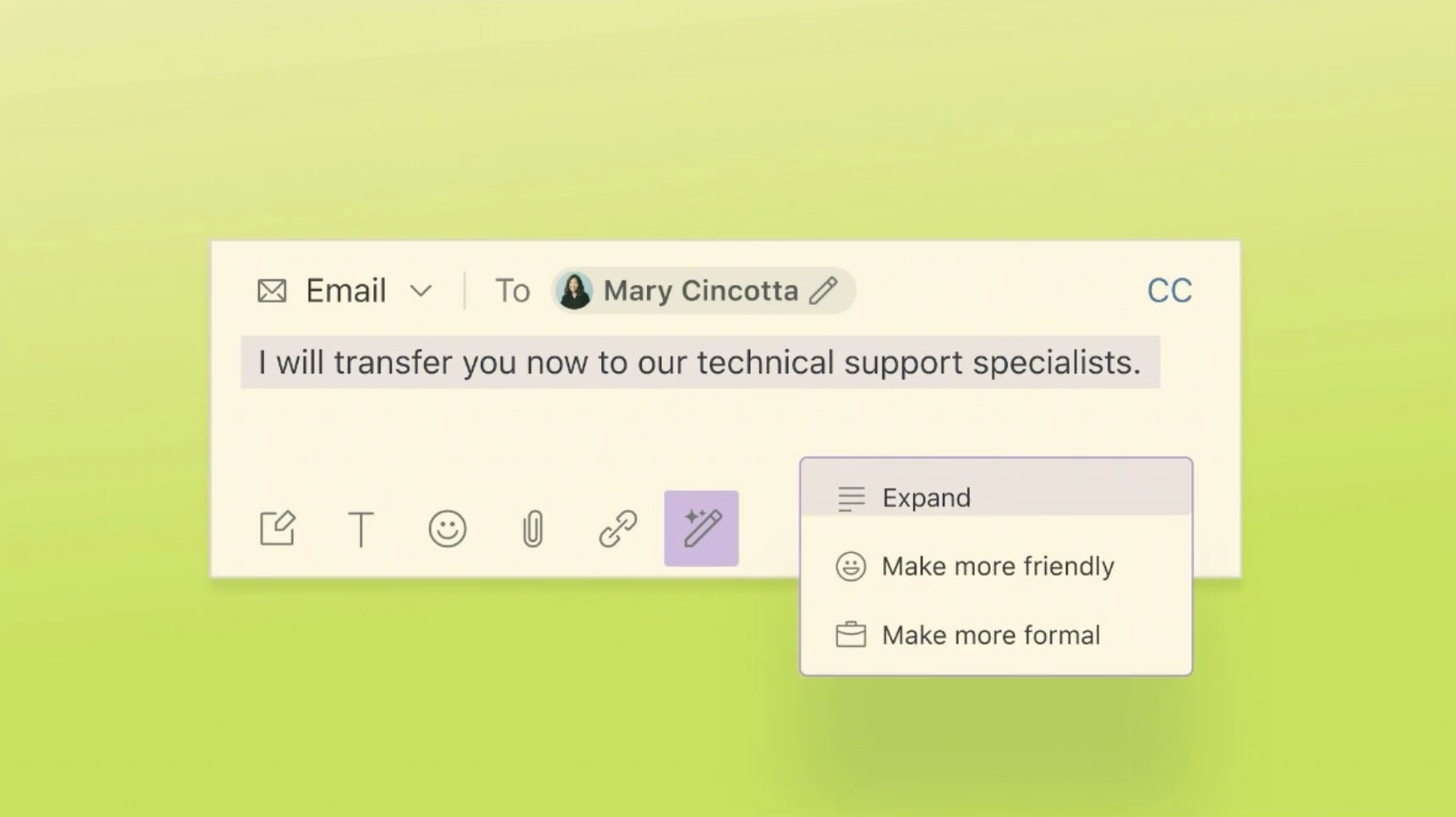 The Generative AI features allows agents to Expand or Tone Shift their comments before sending it to the customer. Or in other words, it takes an existing comment and rewrites it with additional context from the conversation, or changes the tone to be more serious or friendly with the click of a button.