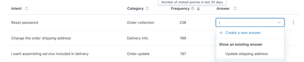 Since this new screen is available for a few days now I've already explored it a bit and this seems like a very useful tool to use for a weekly or monthly review. Just open this view, filter to only see Intents that have been triggers a lot without an assigned answer, and then make sure to either map to the right answer or create a new one. And then also go over the top 20 intents and make sure they are all still mapped correctly. In other words, this offers an easy way to keep your intents and answers up to date, and make sure the most popular requests get mapped and routed correctly.