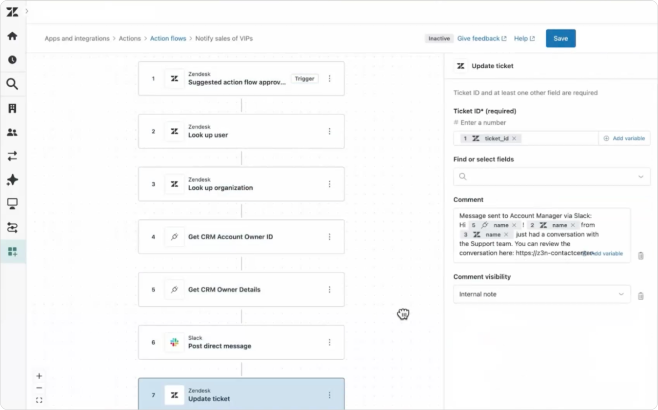 For me, Action Builder is the missing link at the end of the ticket journey—the point where support stops being a closed loop and starts feeding the rest of the company. When I first wrote about it, I called it “a better trigger system,” and that was only half right. Sure, it can tag, comment, and update like the best of them. But that’s not the point. Action Builder isn’t about tidying up workflows; it’s about wiring Zendesk into everything else you use. With its native and custom integrations, it turns ticket activity into company activity—making sure feedback, requests, and insights don’t die in a solved ticket but land where they can be fixed, measured, or turned into something better.