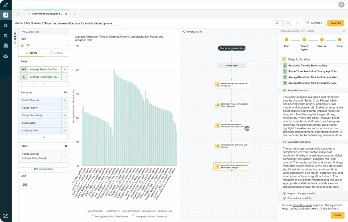 HyperArc, a recent acquisition from Zendesk tries to solve both issues. Similar to Admin Copilot it uses a conversational agent you can talk to and ask for insights. HyperArc will render reports, show trends and explain what's happening, giving you a data analyst at your fingertips.